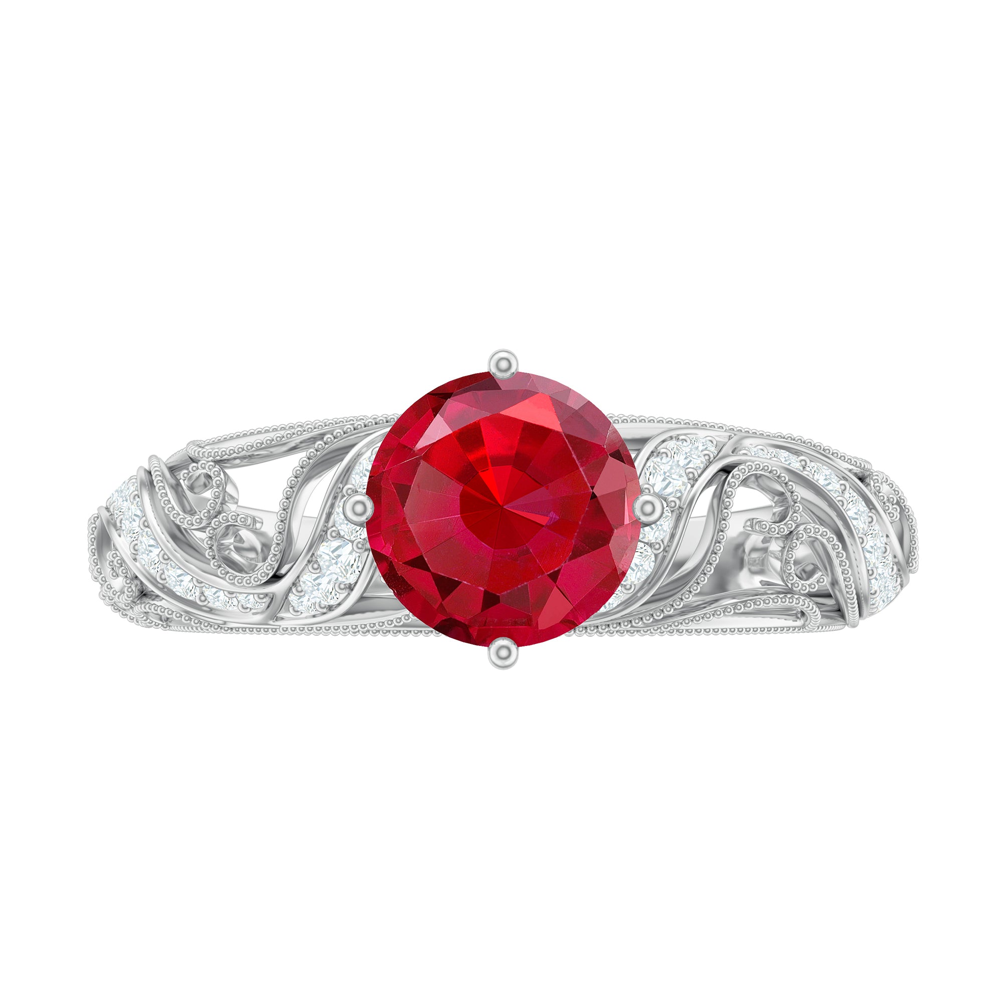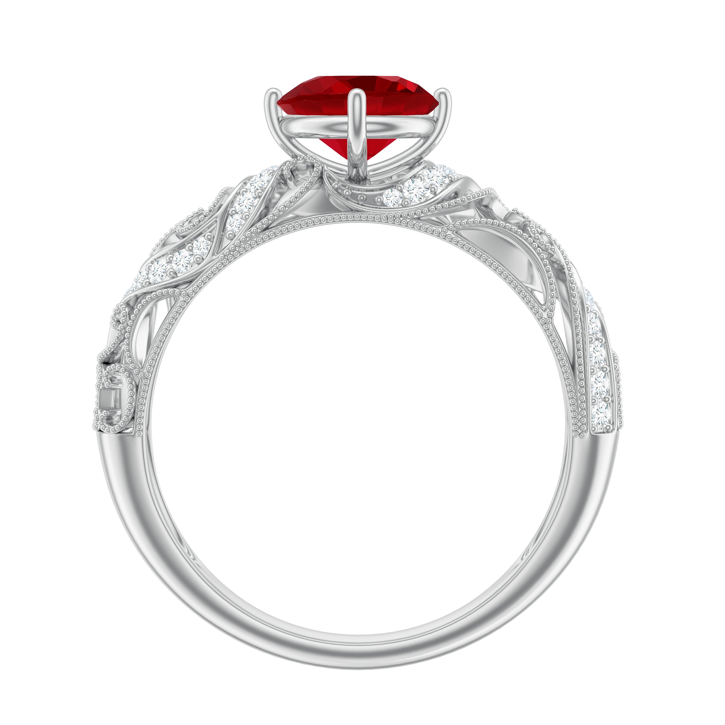 Vintage Looking Lab Ruby and Diamond Engagement Ring