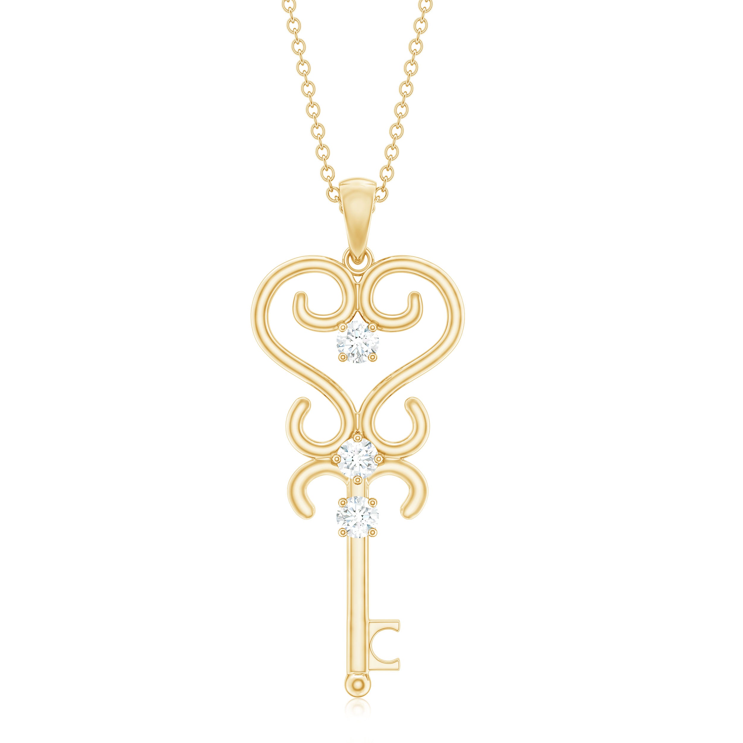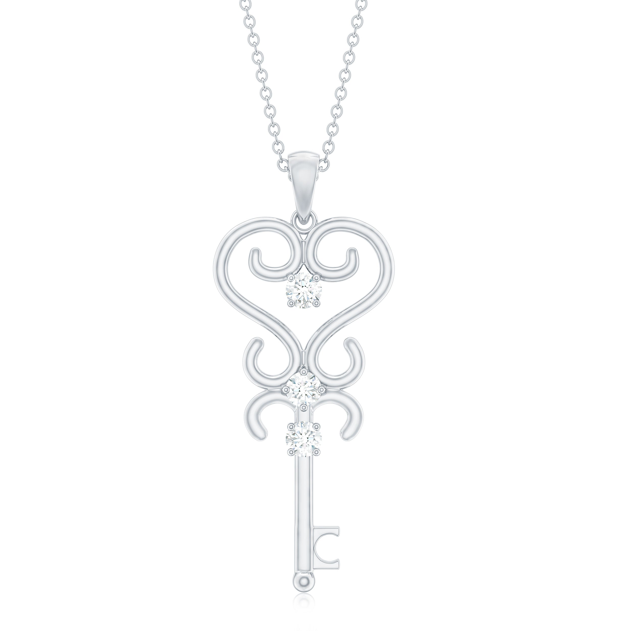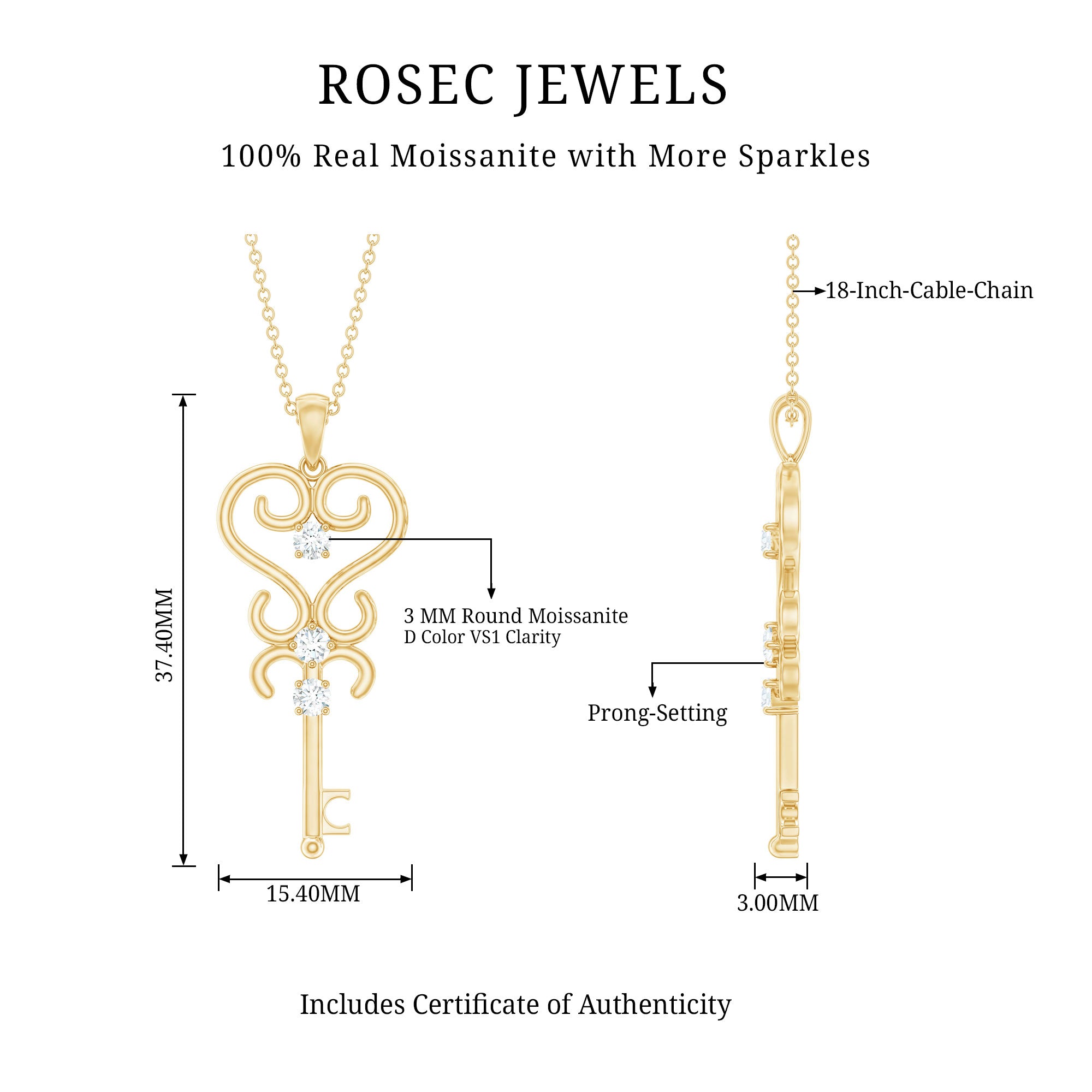 Get this Key Pendant Necklace for your loved ones as it is embellished with Round Shape Moissanite secured in Prong Setting on a unique key design. Flaunt this Vintage Moissanite Pendant with your casual or dressy attires for a fascinating look. This Key Pendant Necklace makes a fabulous present for your favorite person.