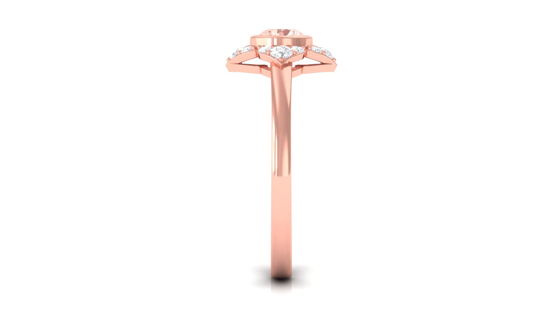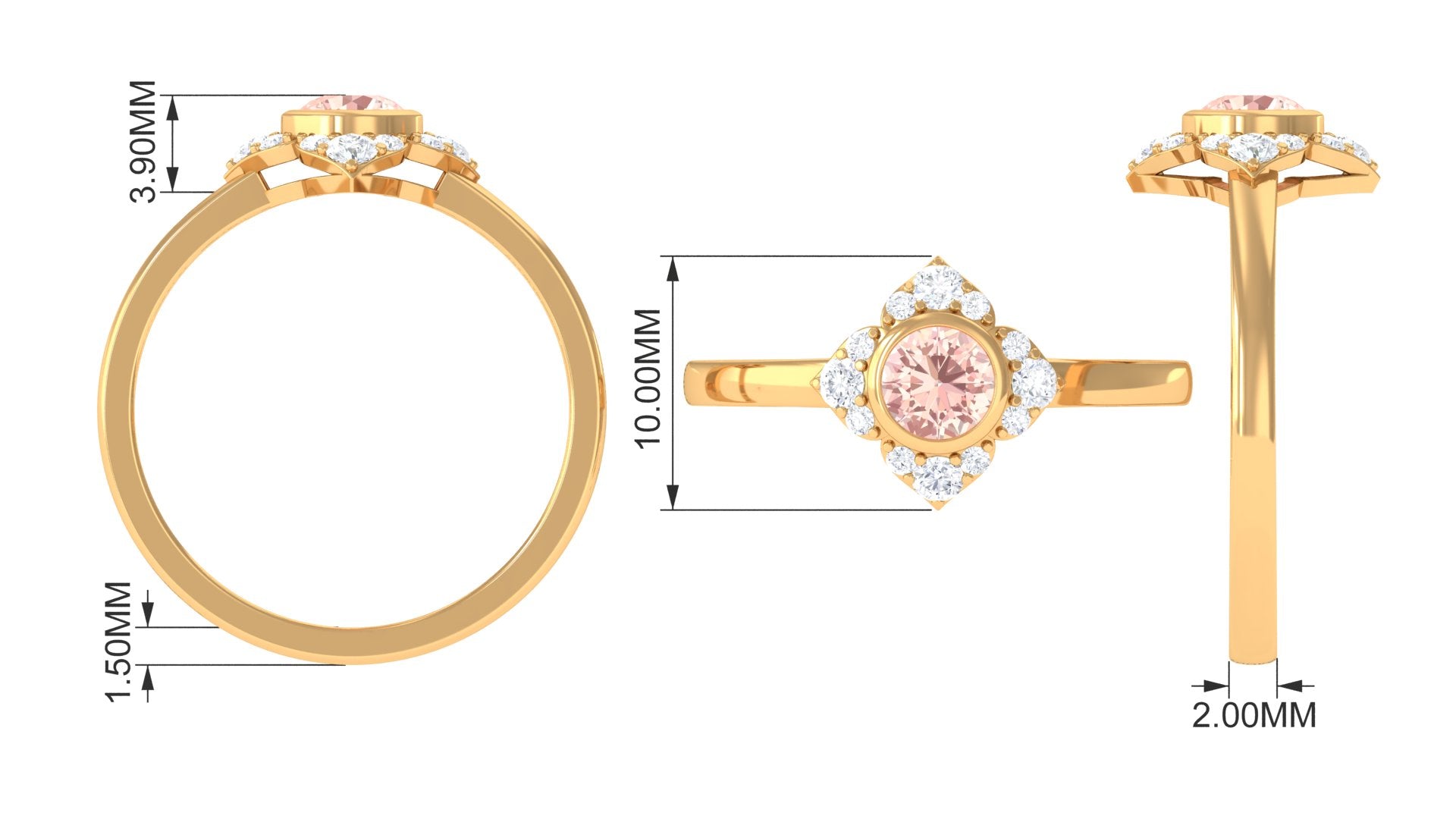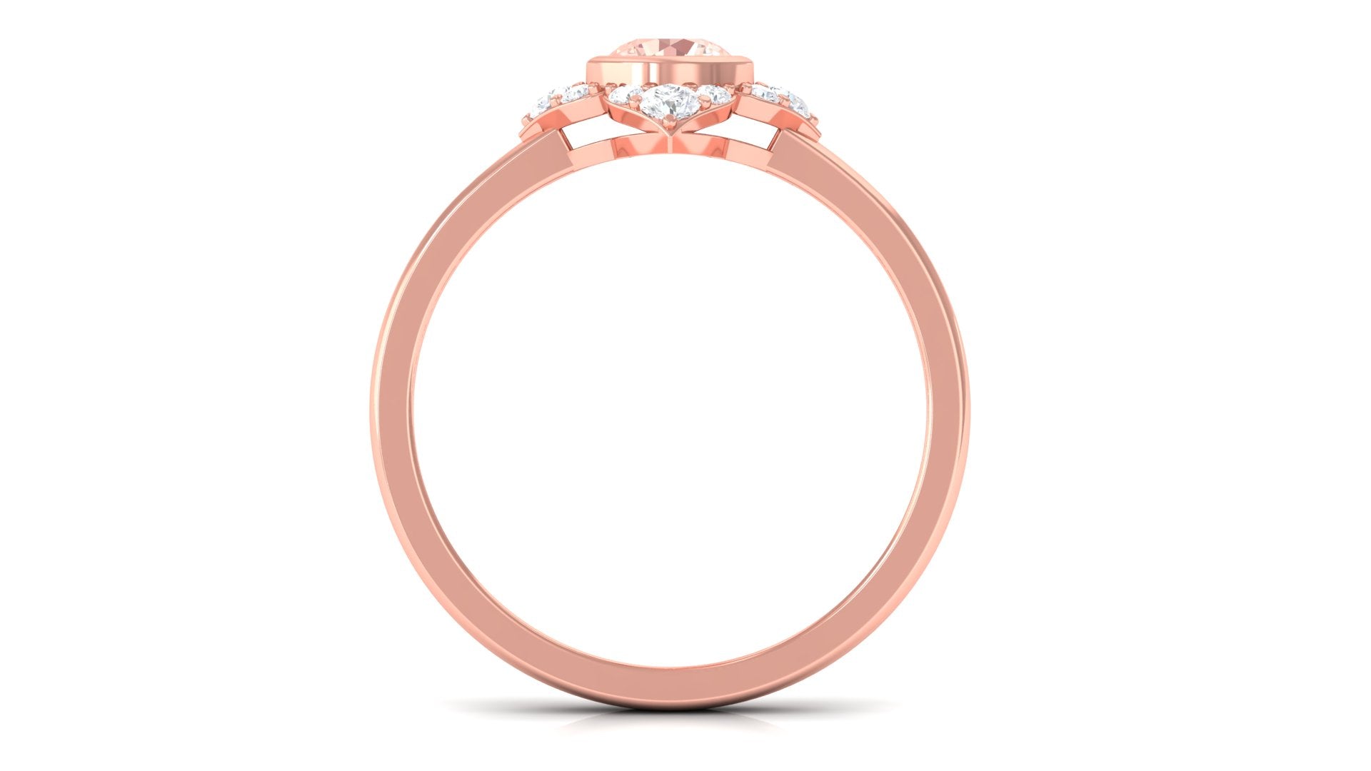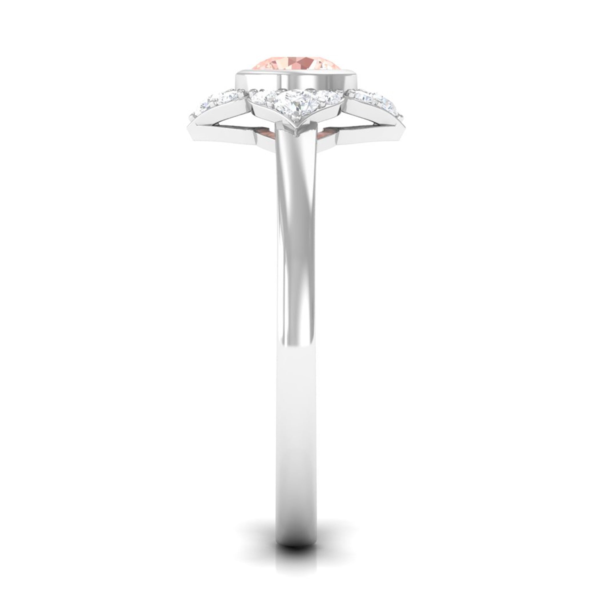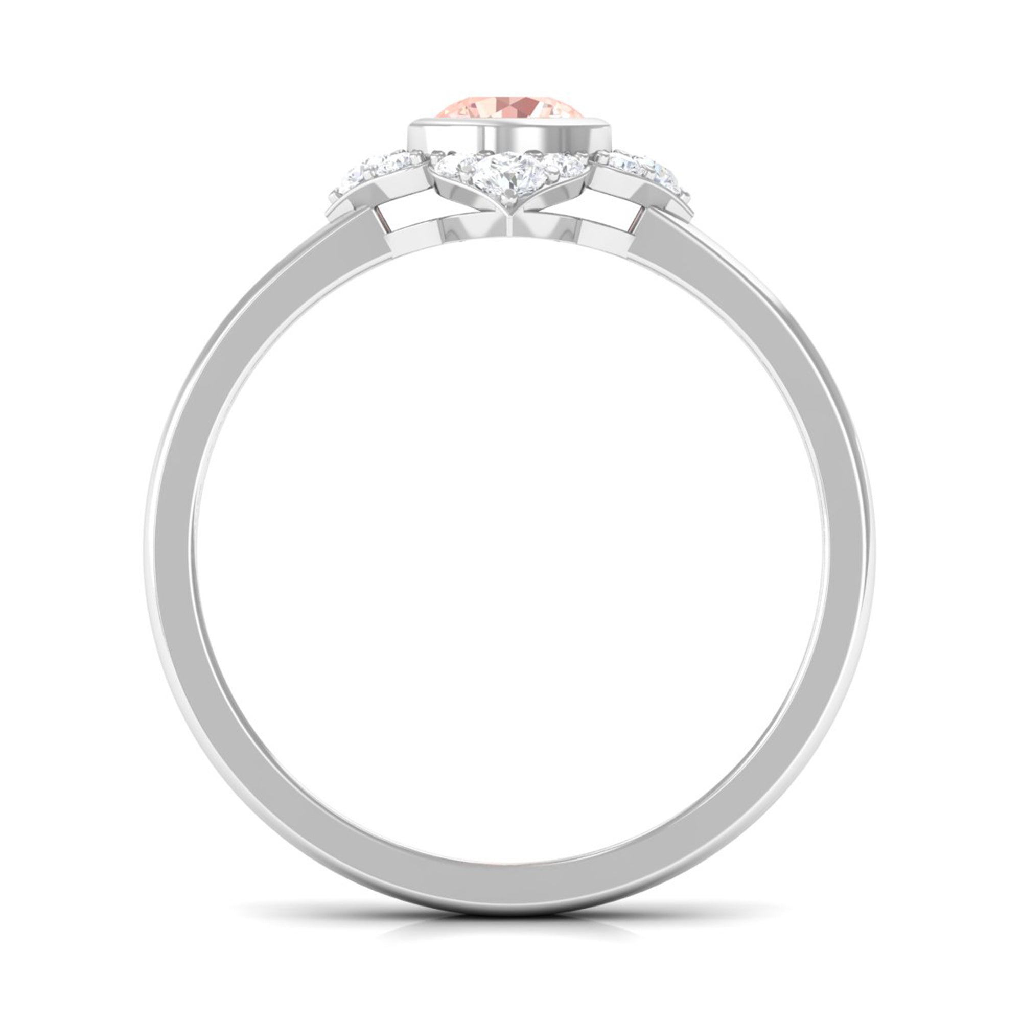 Present this Vintage Inspired Engagement Ring to your lady love. This Floral Engagement Ring is embellished with Round Shape Morganite in the center in a bezel setting with Round Shape Diamond Accent. This Morganite and Diamond Ring is crafted in gold metal.