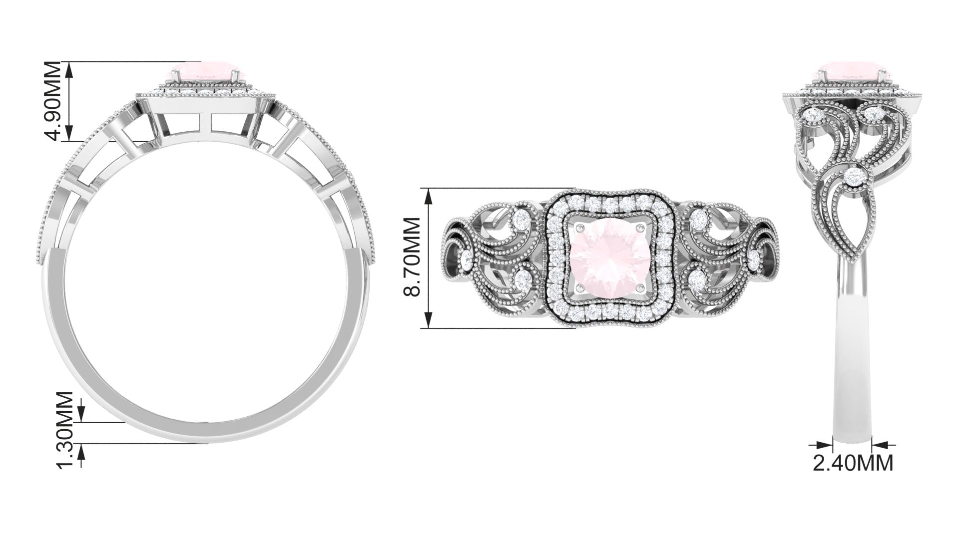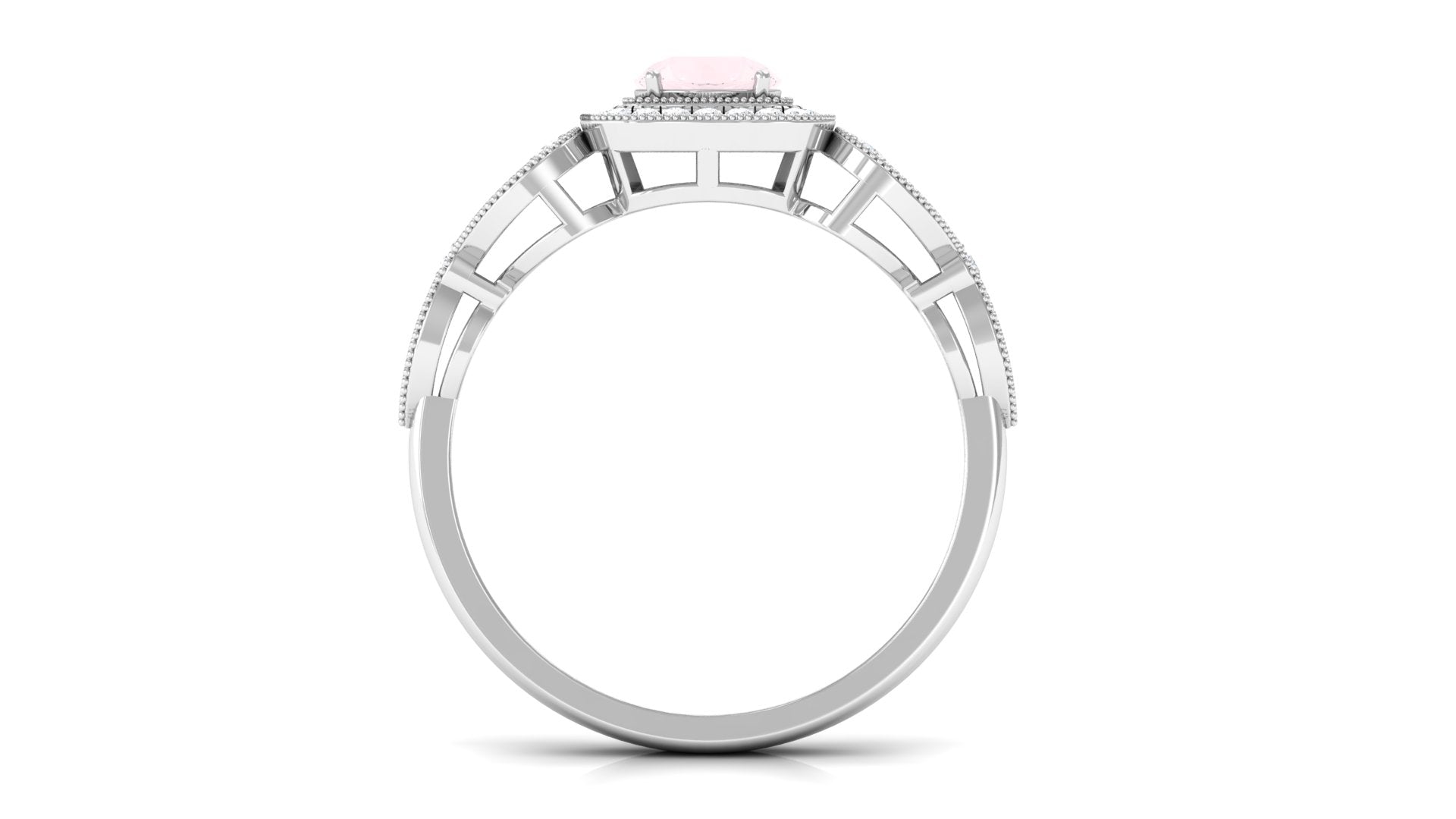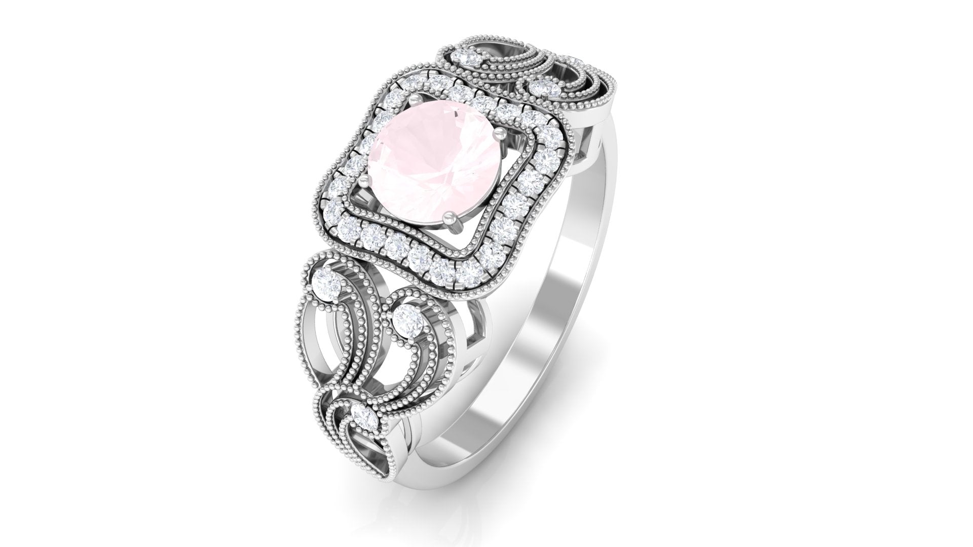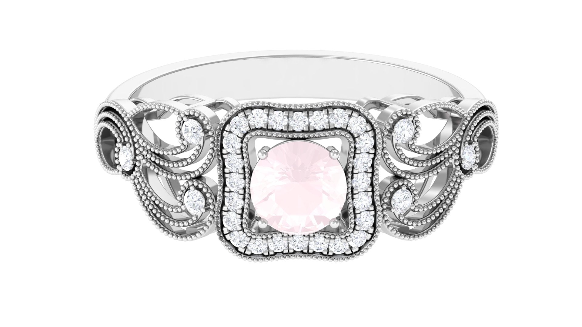 Vintage Rose Quartz and Diamond Milgrain Engagement Ring