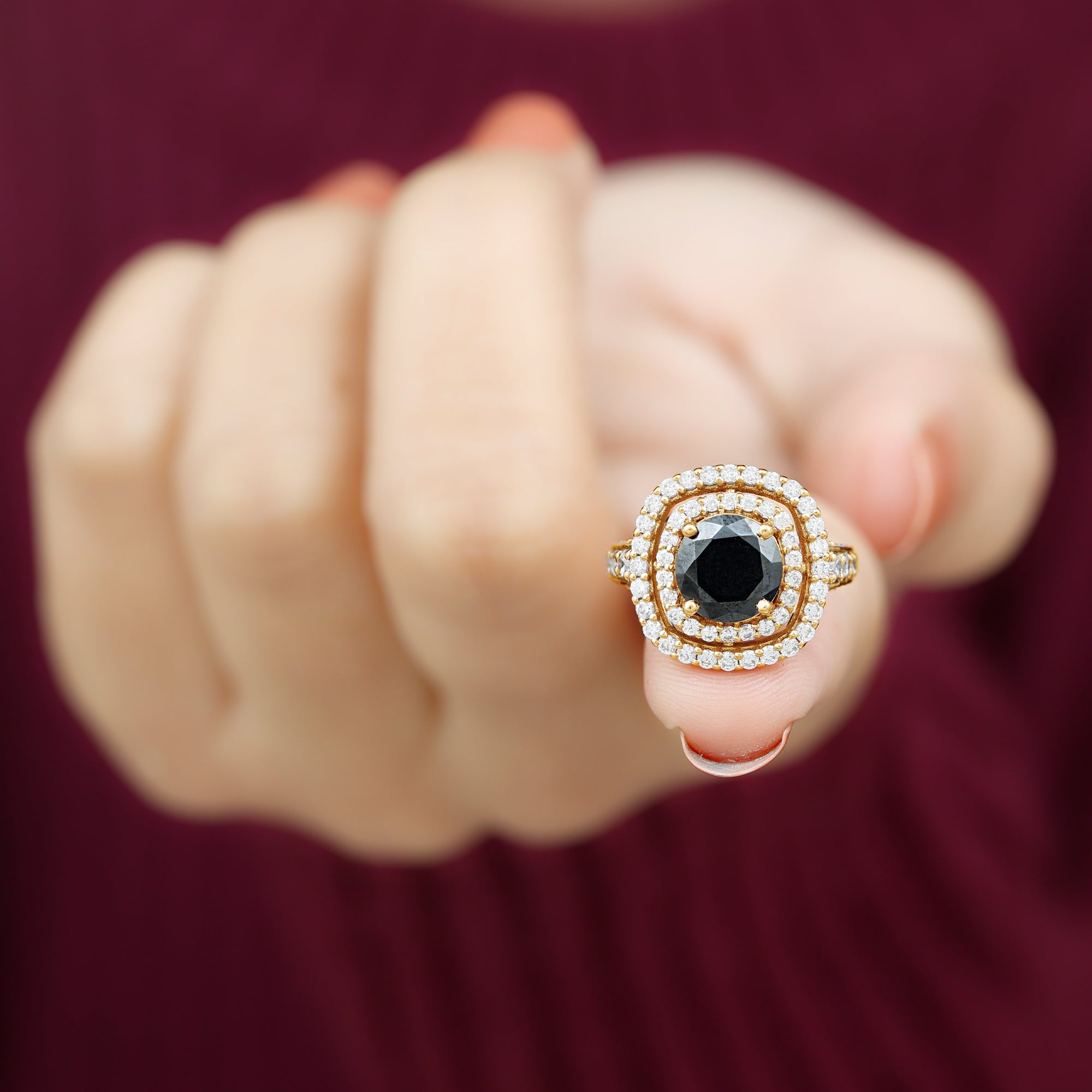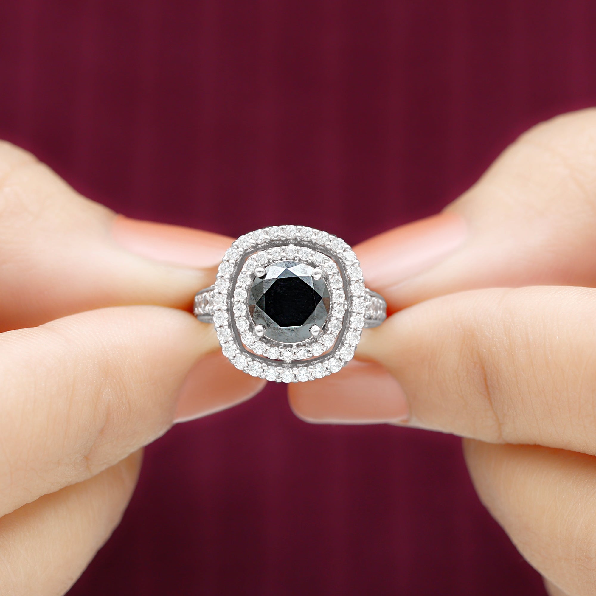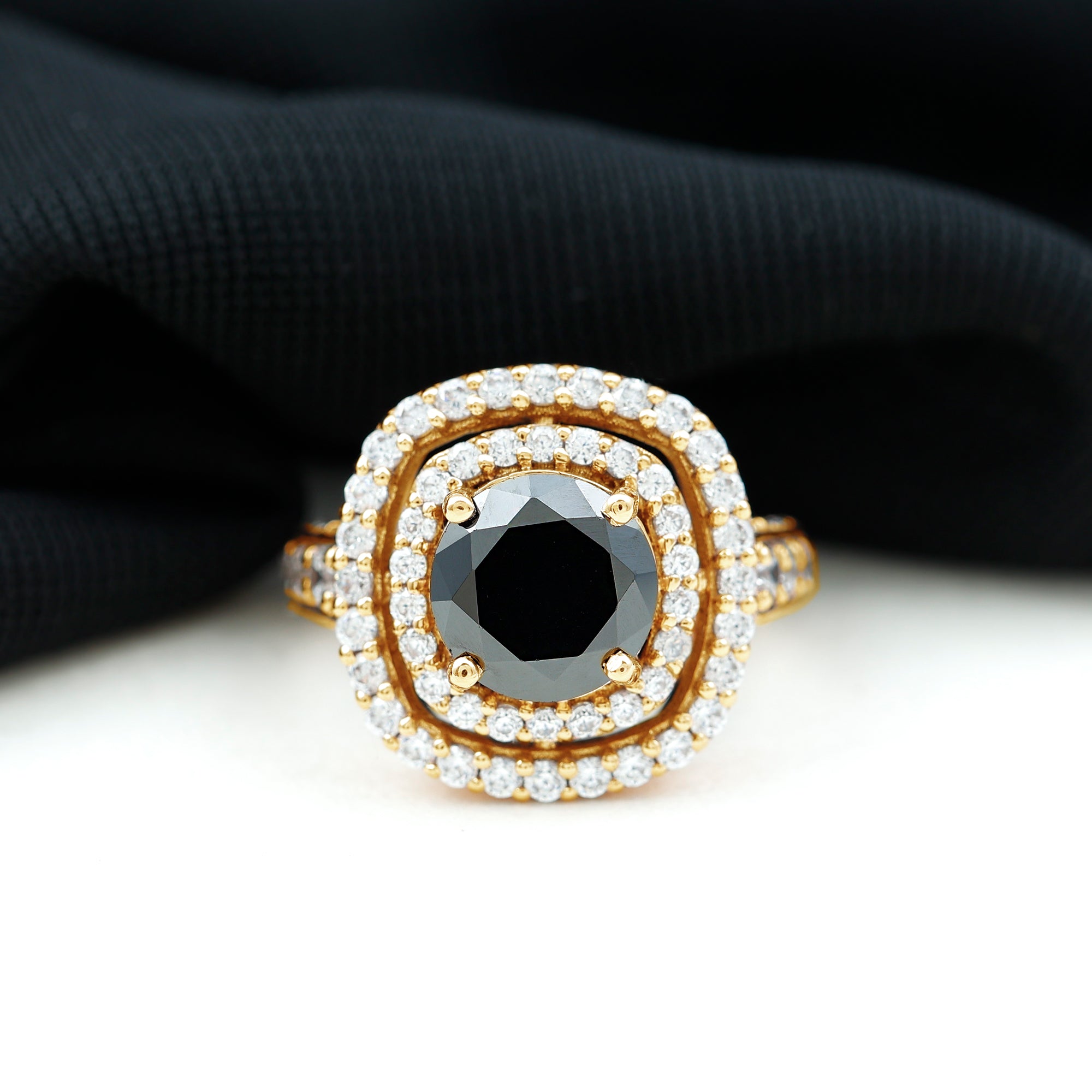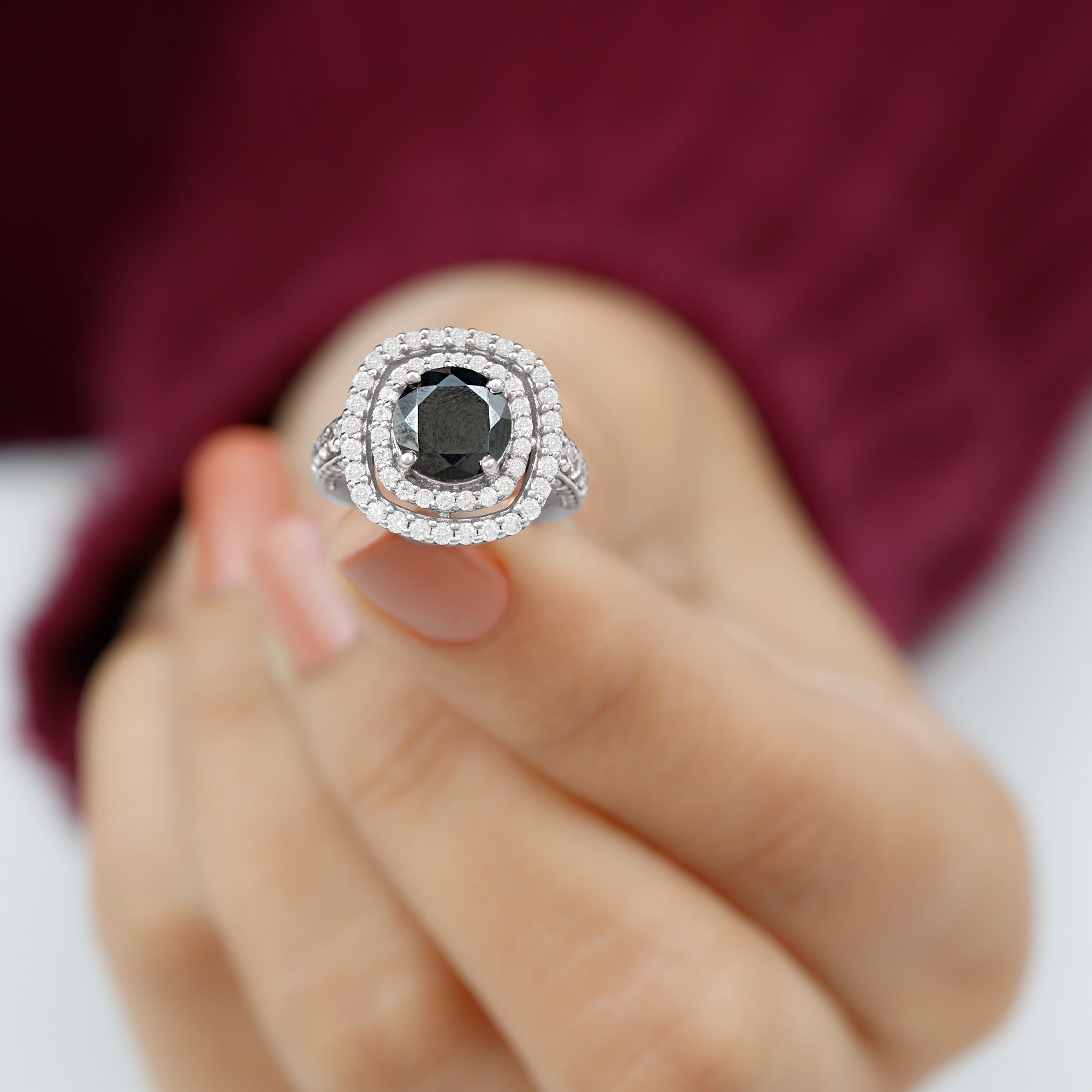 Lab Created Black Diamond Halo Engagement rings: Black diamond making the heart of the ring is surrounded by the accent of other shining gemstones, like moissanite or diamonds. The halo around the gemstone not only adds a sparkle, but offers it protection too.