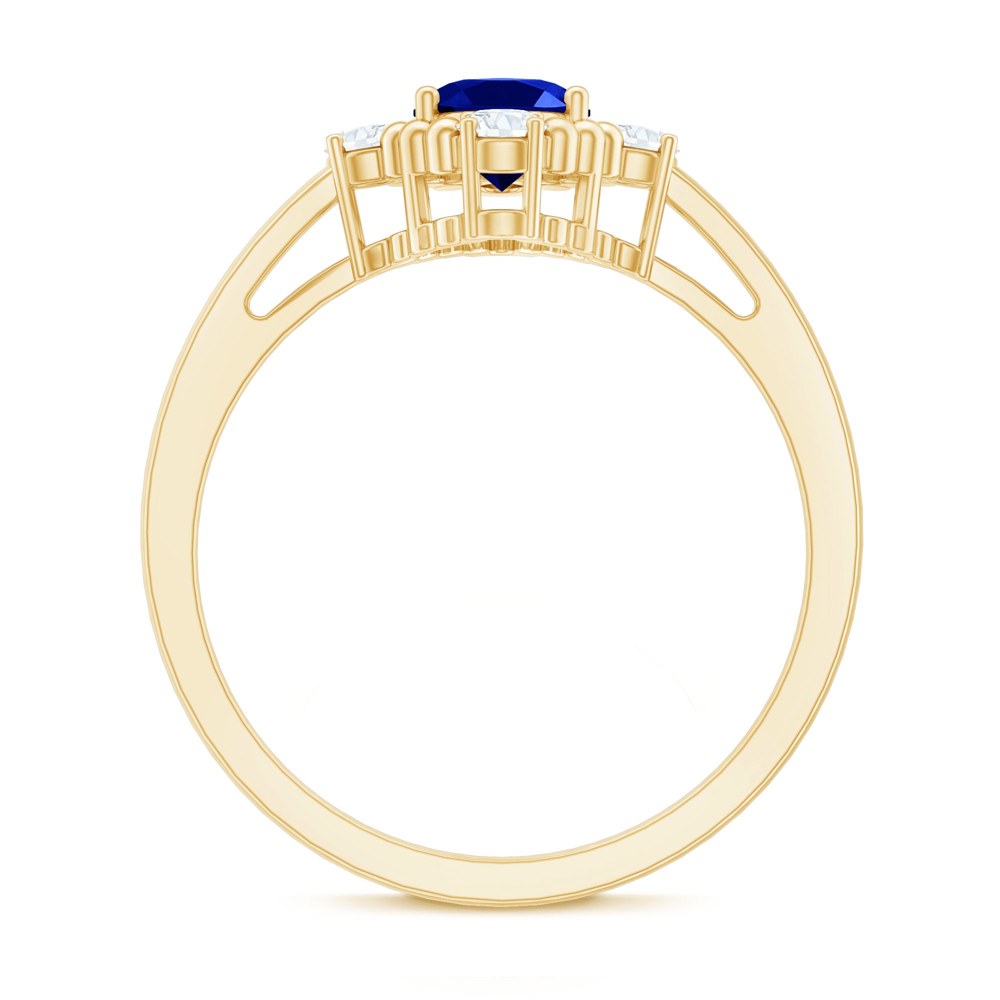 Vintage Style Created Blue Sapphire Solitaire Engagement Ring with Diamond