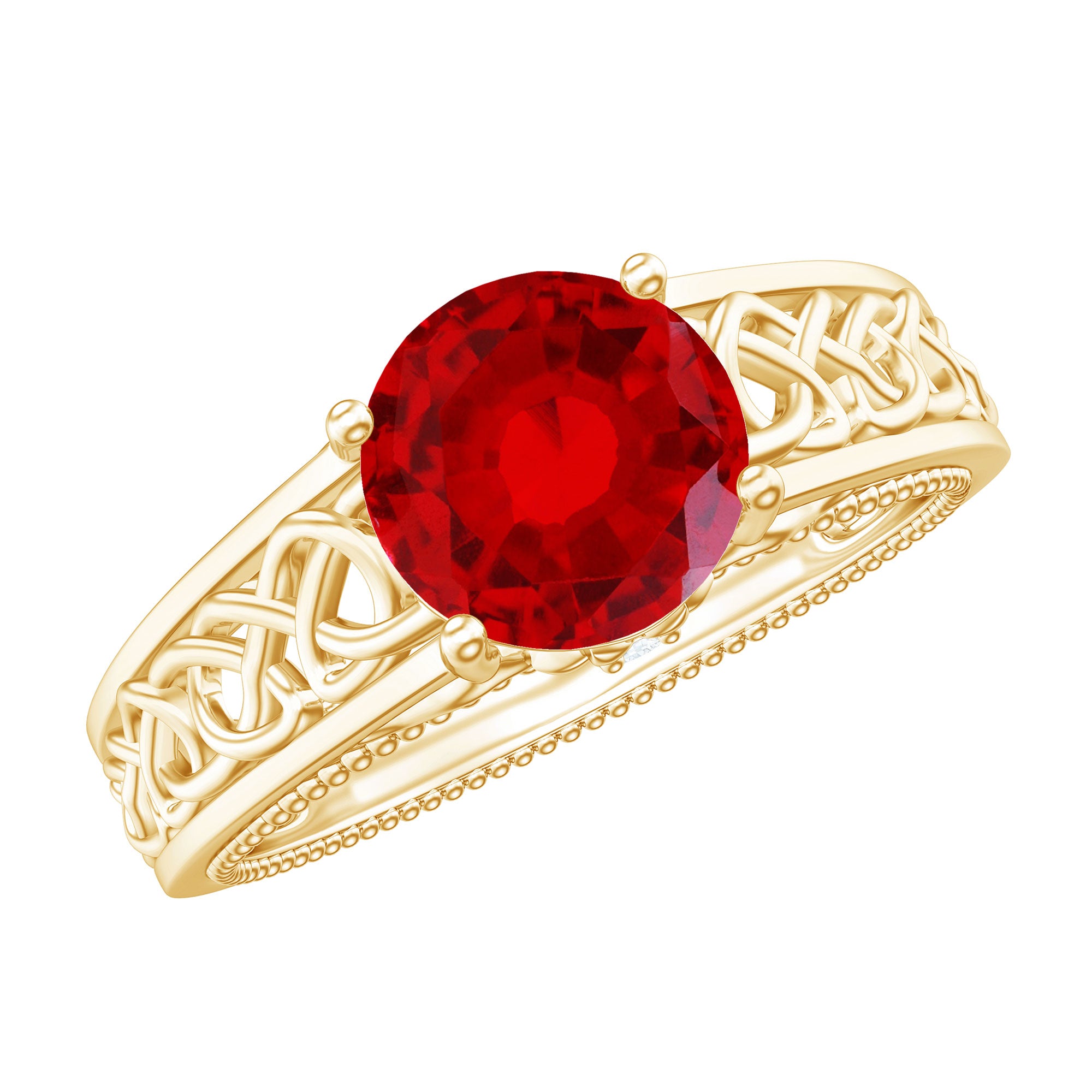 Vintage Style Created Ruby Celtic Knot Band Ring with Surprise Diamond