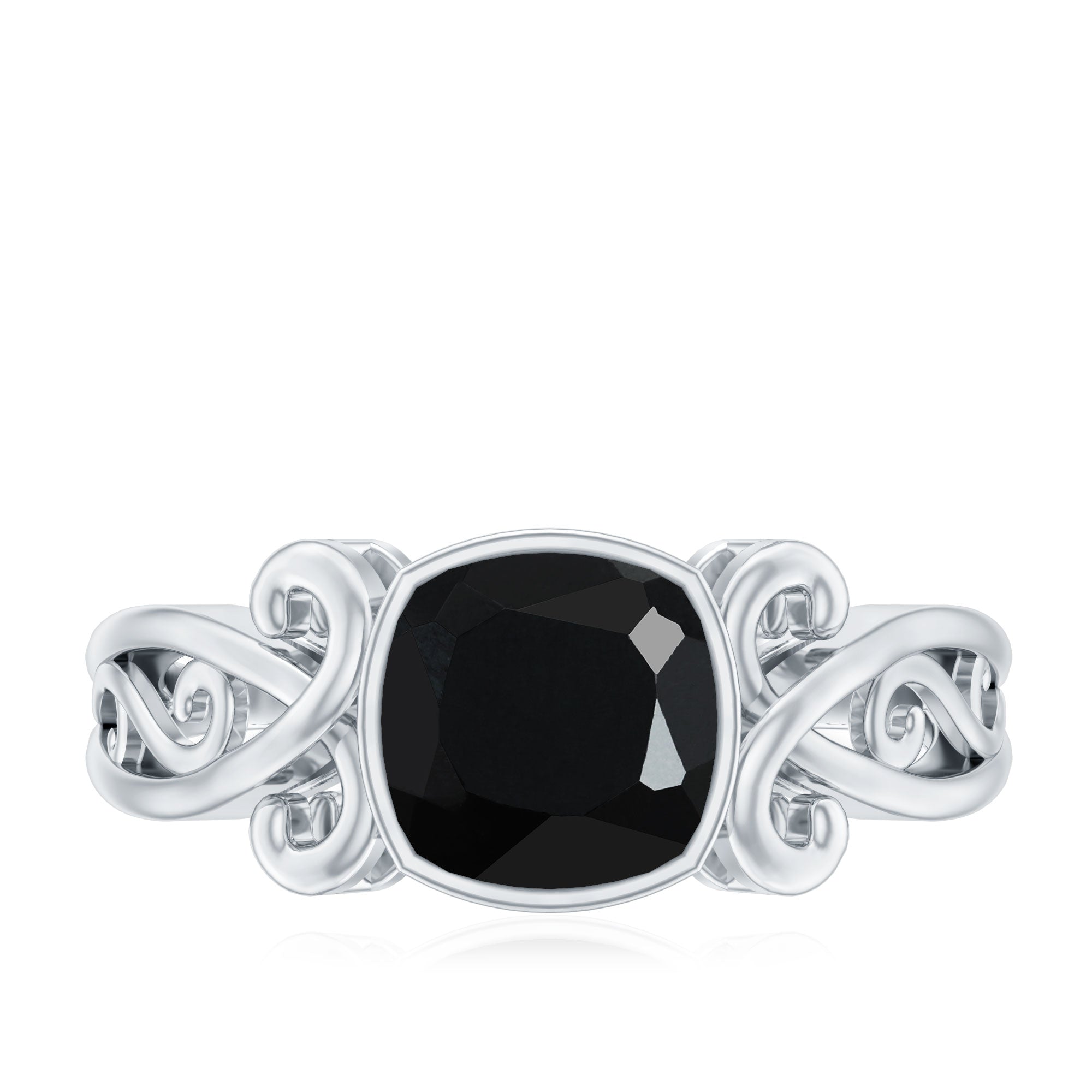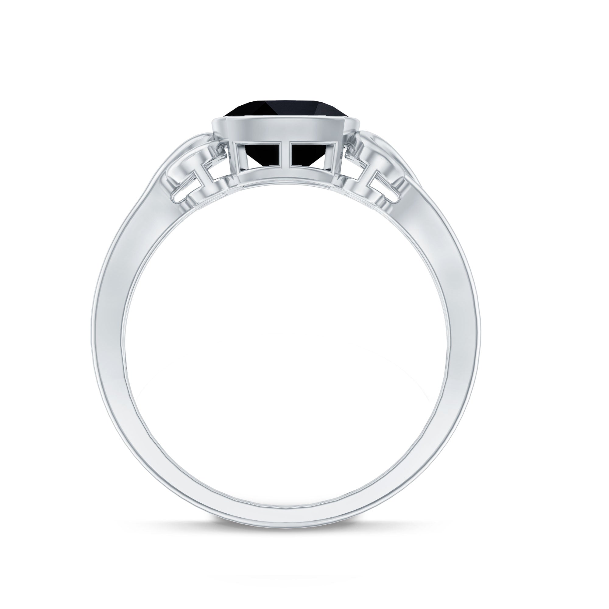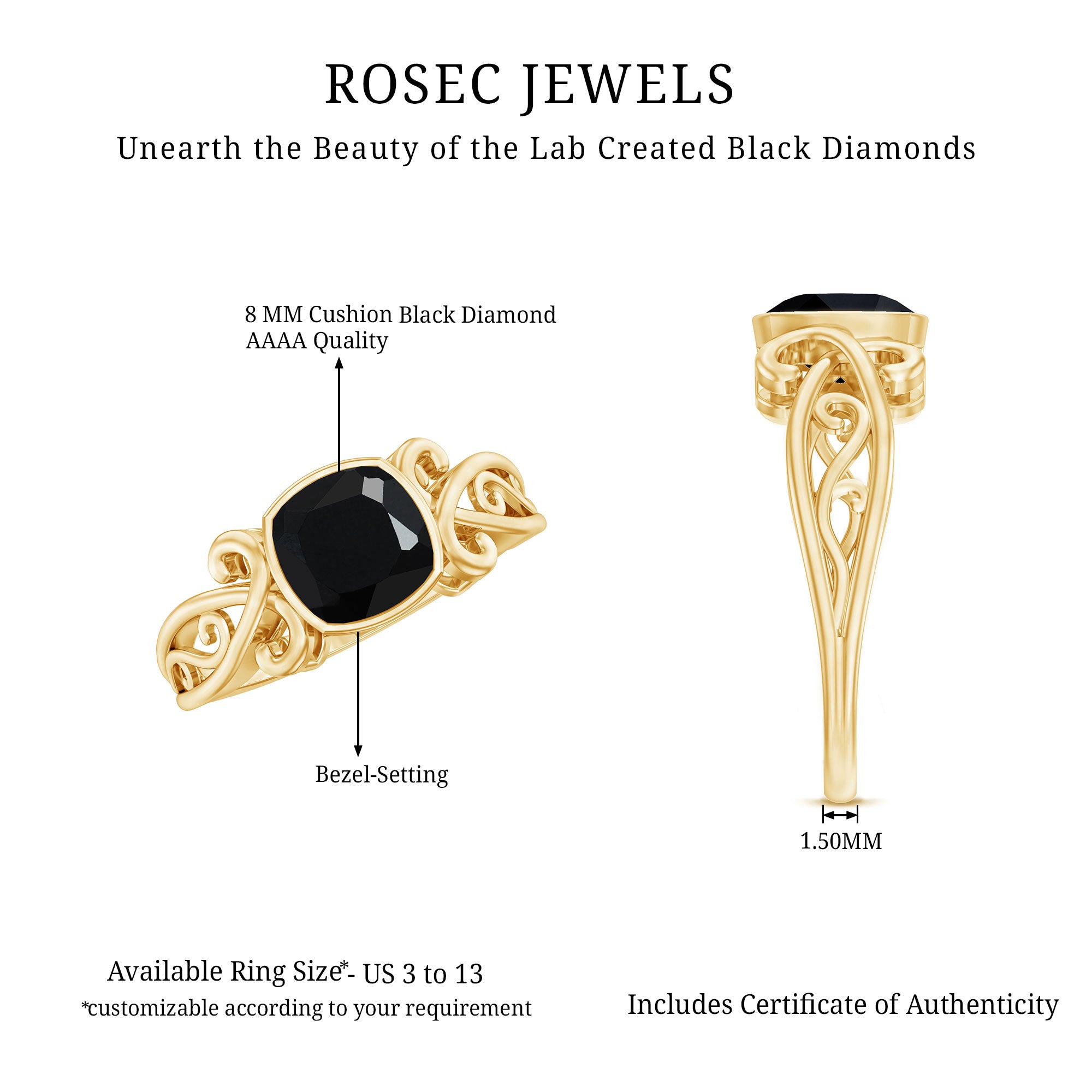 Vintage Style Cushion Created Black Diamond Solitaire Ring in Bezel Setting
