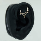Level up your earring game with the ultimate stack essential, the Diamond Helix Earring! Showcasing diamonds all secured in beaded bezel setting, joined by a double chain, and is ready to bring the bling. Whether youre vibing with the cartilage, or upper lobe, this diamond dazzler is your go-to for making a unique style statement. You can also Gift this Double Piercing Earring to your special one for an instant win. Get ready to slay with the Diamond earring because your ears deserve some serious sparkle!