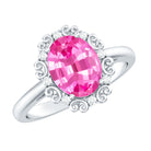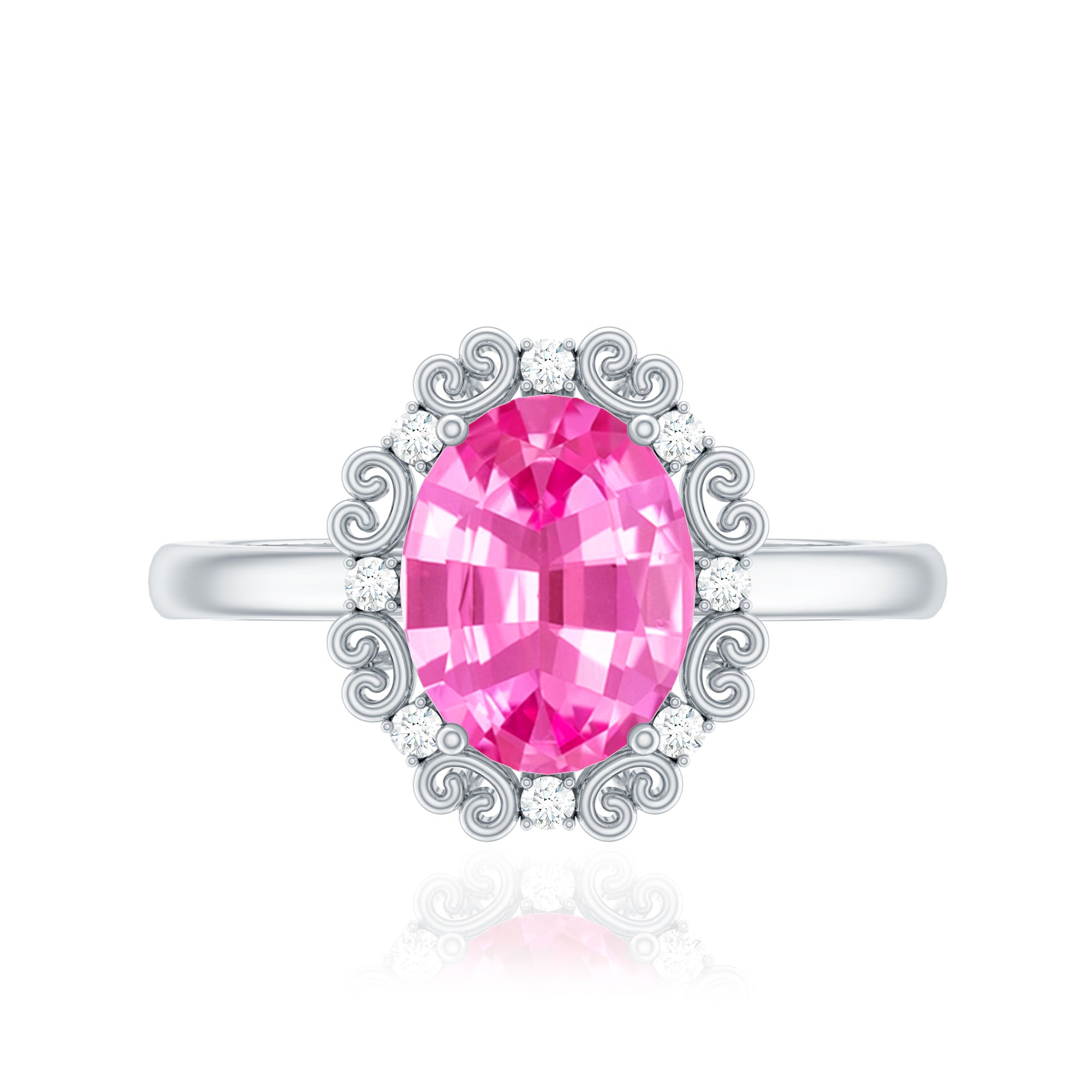 Vintage Style Lab Grown Pink Sapphire Oval Engagement Ring
