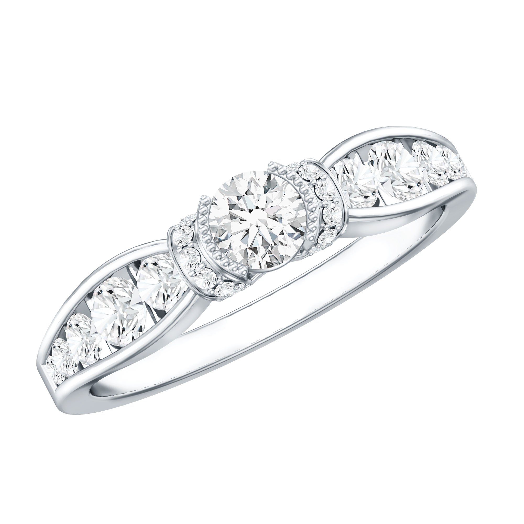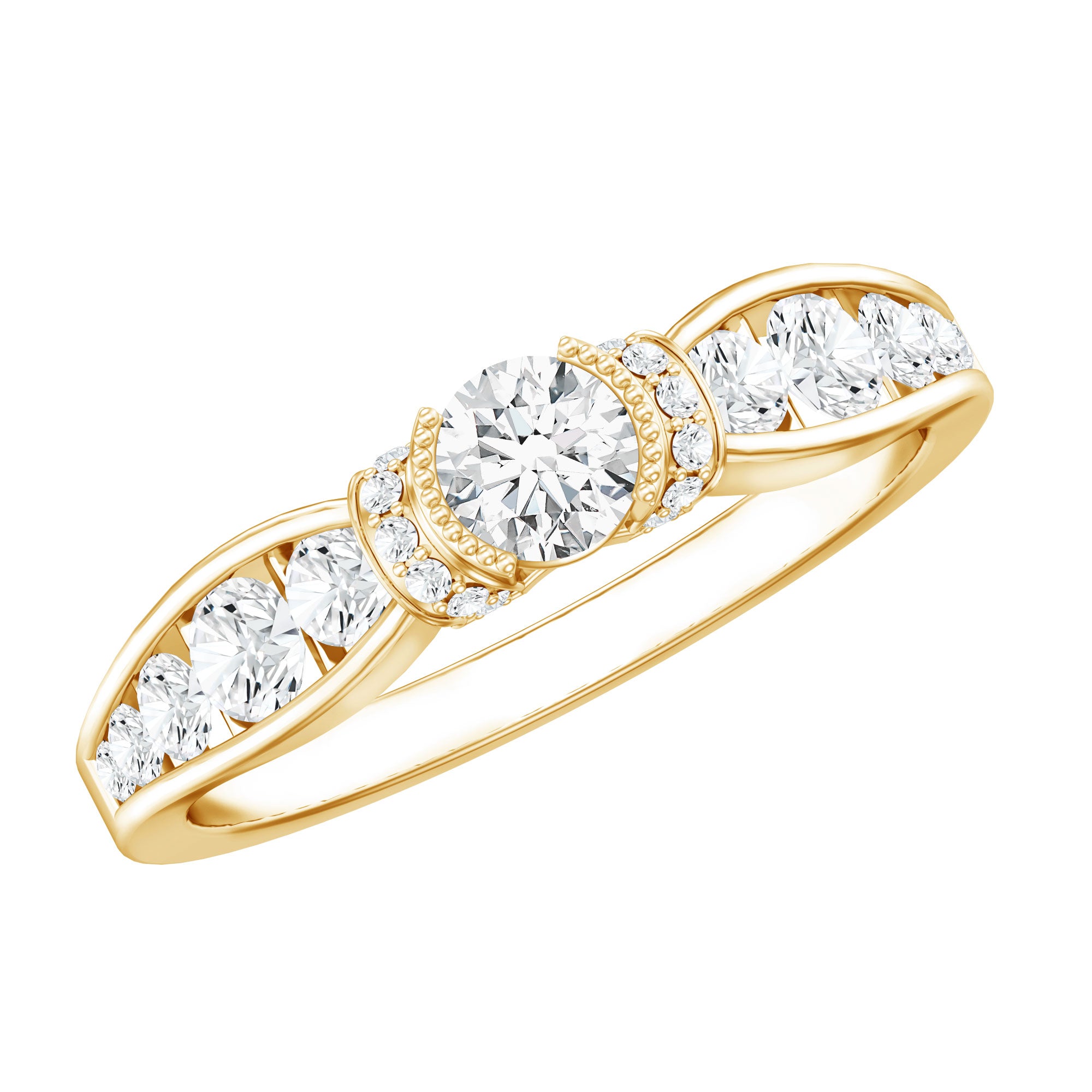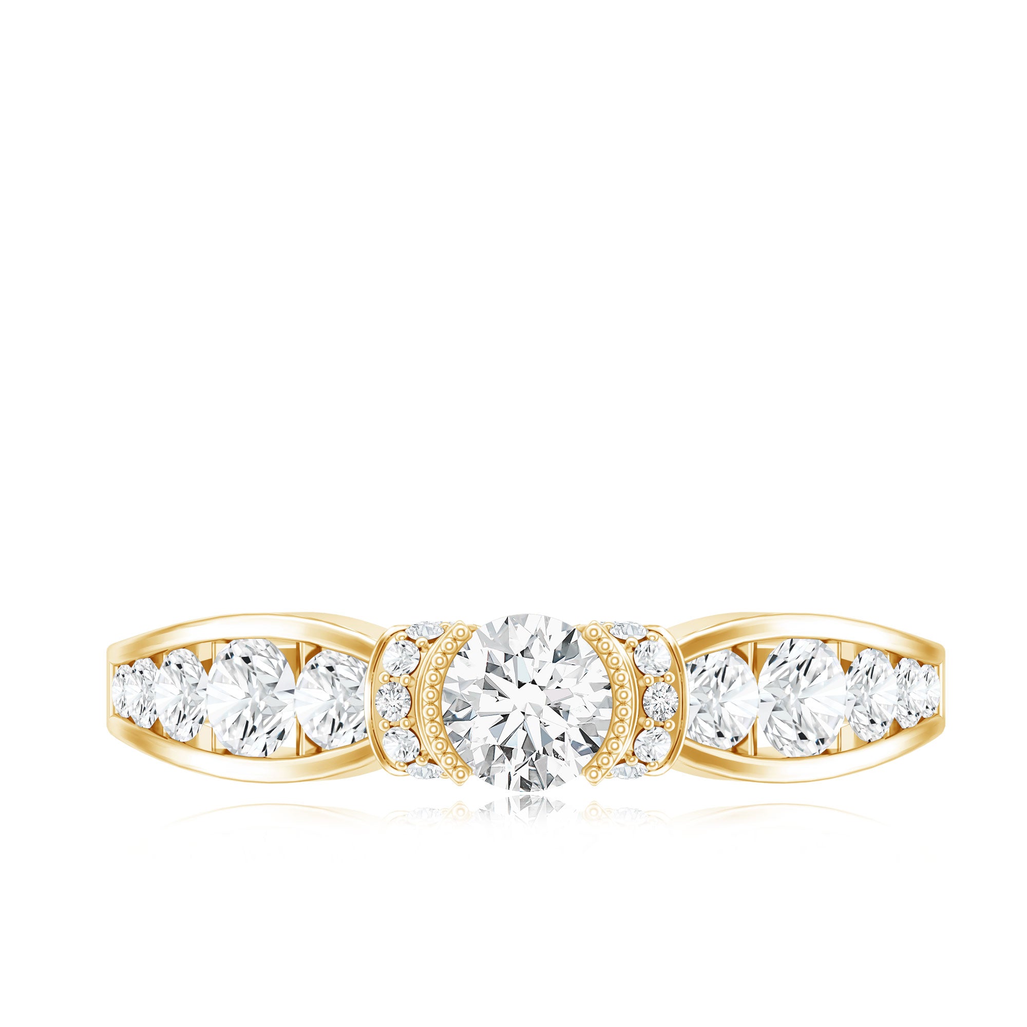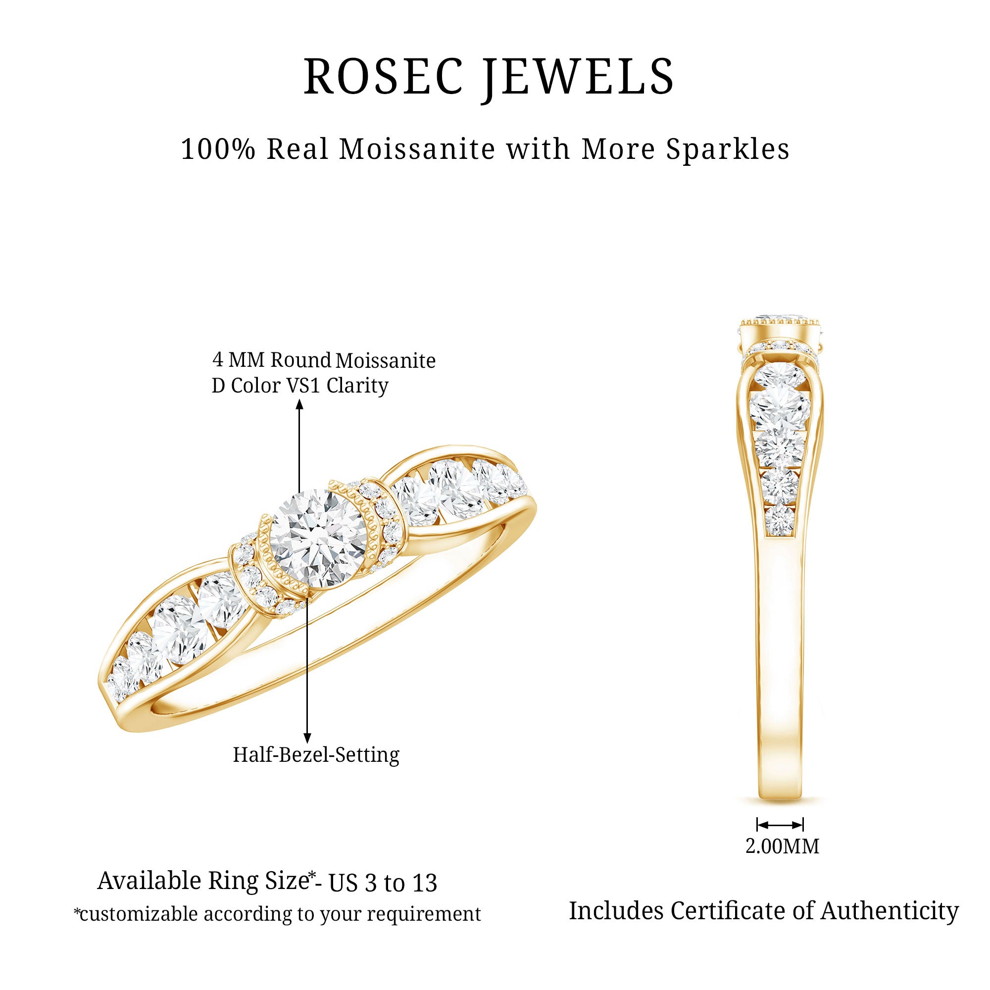 Embrace timeless beauty with this Vintage Moissanite Engagement Ring - an elegant blend of old-world charm and modern brilliance. At the center of the design lies a 4 MM round moissanite, securely nestled in a safe half bezel setting. The centerpiece is framed by a graceful collar design, accented with dainty graduated style side stones that enhance the ring’s brilliance without overpowering its refined silhouette. Beaded detailing adds a touch of antique artistry, giving the ring a romantic, heirloom-inspired feel. Every element is thoughtfully crafted to evoke a sense of nostalgia while still feeling fresh and contemporary. Perfect for the bride who appreciates classic elegance with a unique twist, this Antique Looking Engagement Ring is more than just jewelry - it is a meaningful symbol of love, commitment, and individuality. Whether you are proposing, celebrating an anniversary, or gifting a lasting memory, this Moissanite Ring for Women makes a beautiful and intentional statement. With vintage details, modern sparkle, and a story woven into every curve, this Vintage Moissanite Ring is designed to be treasured forever - a timeless piece for a love that never goes out of style.