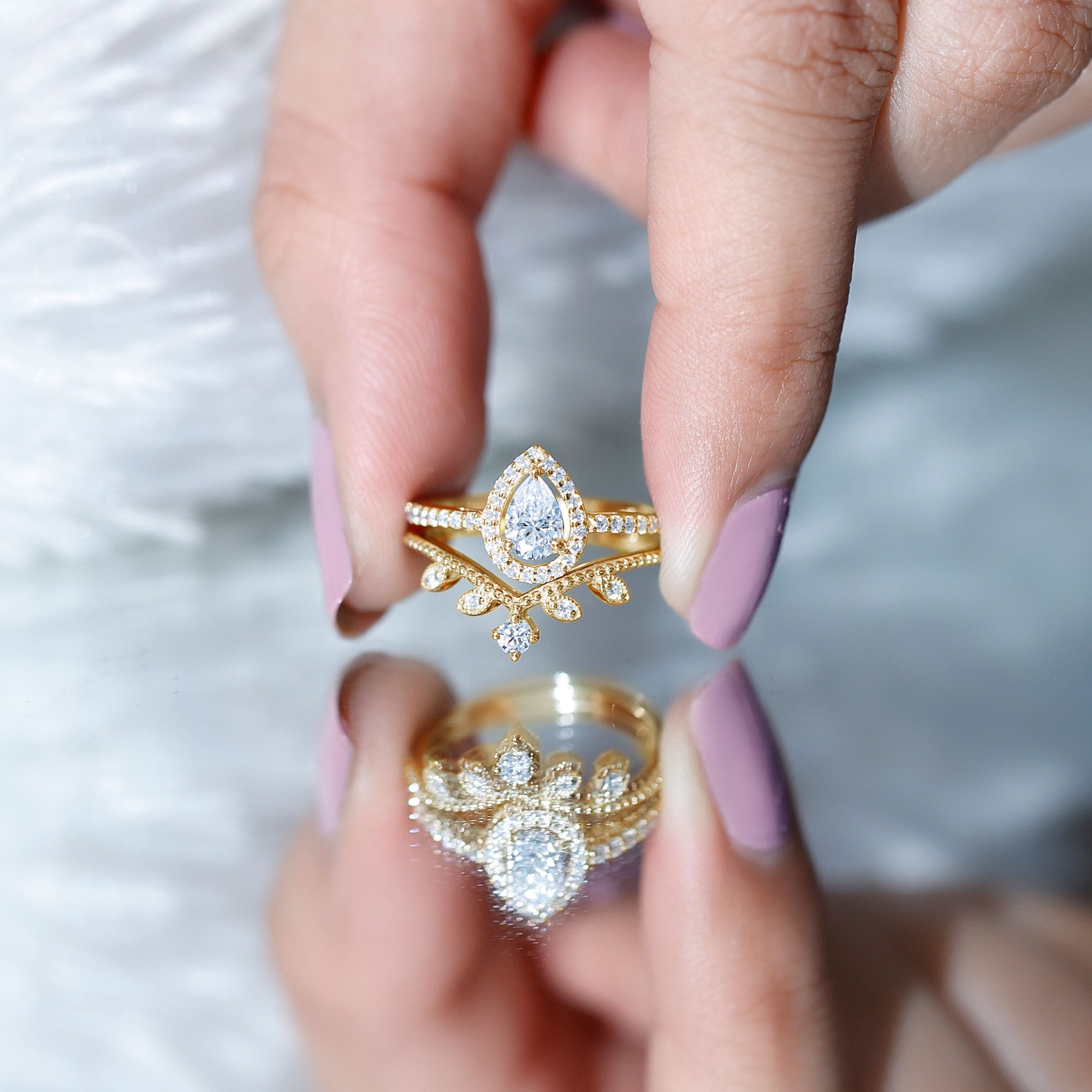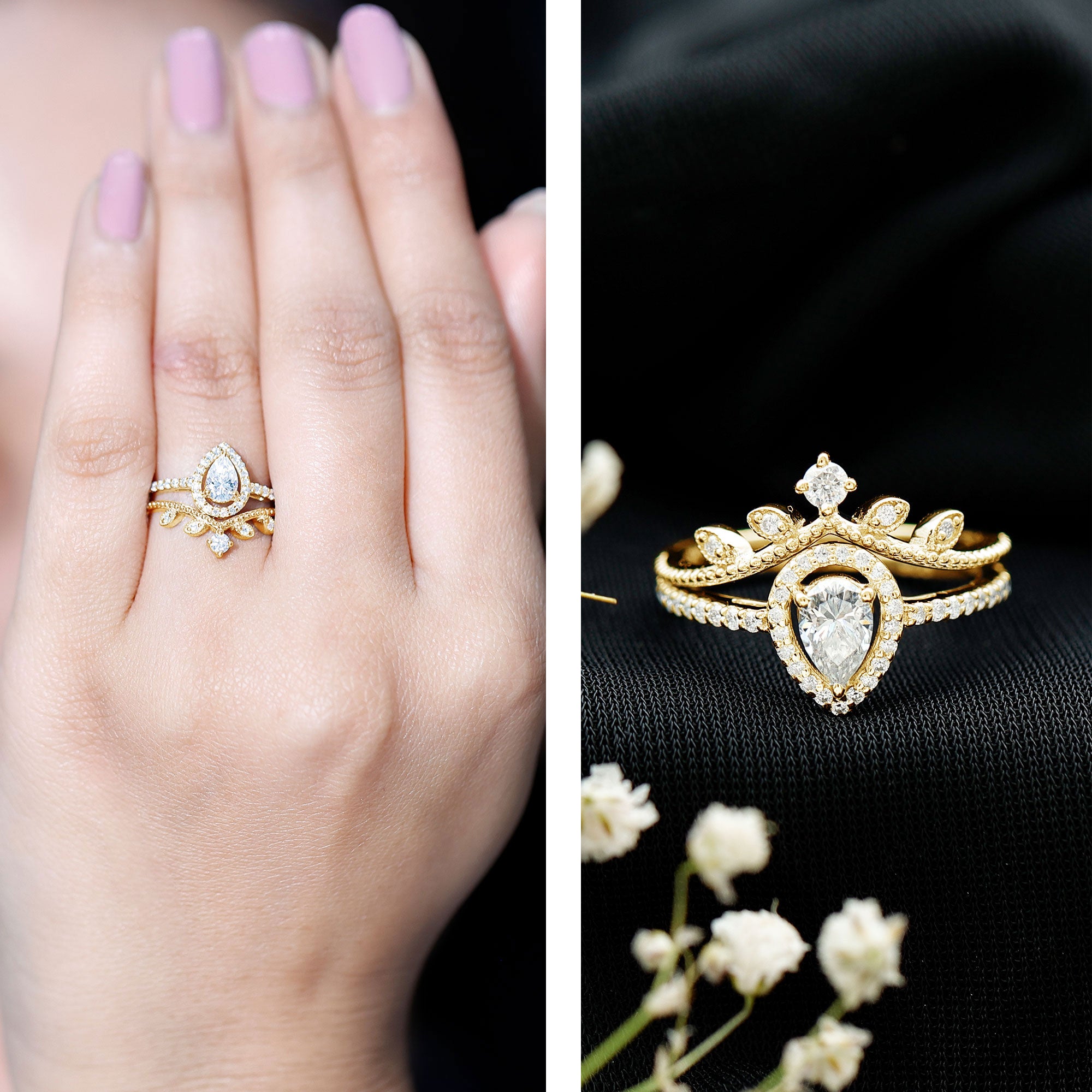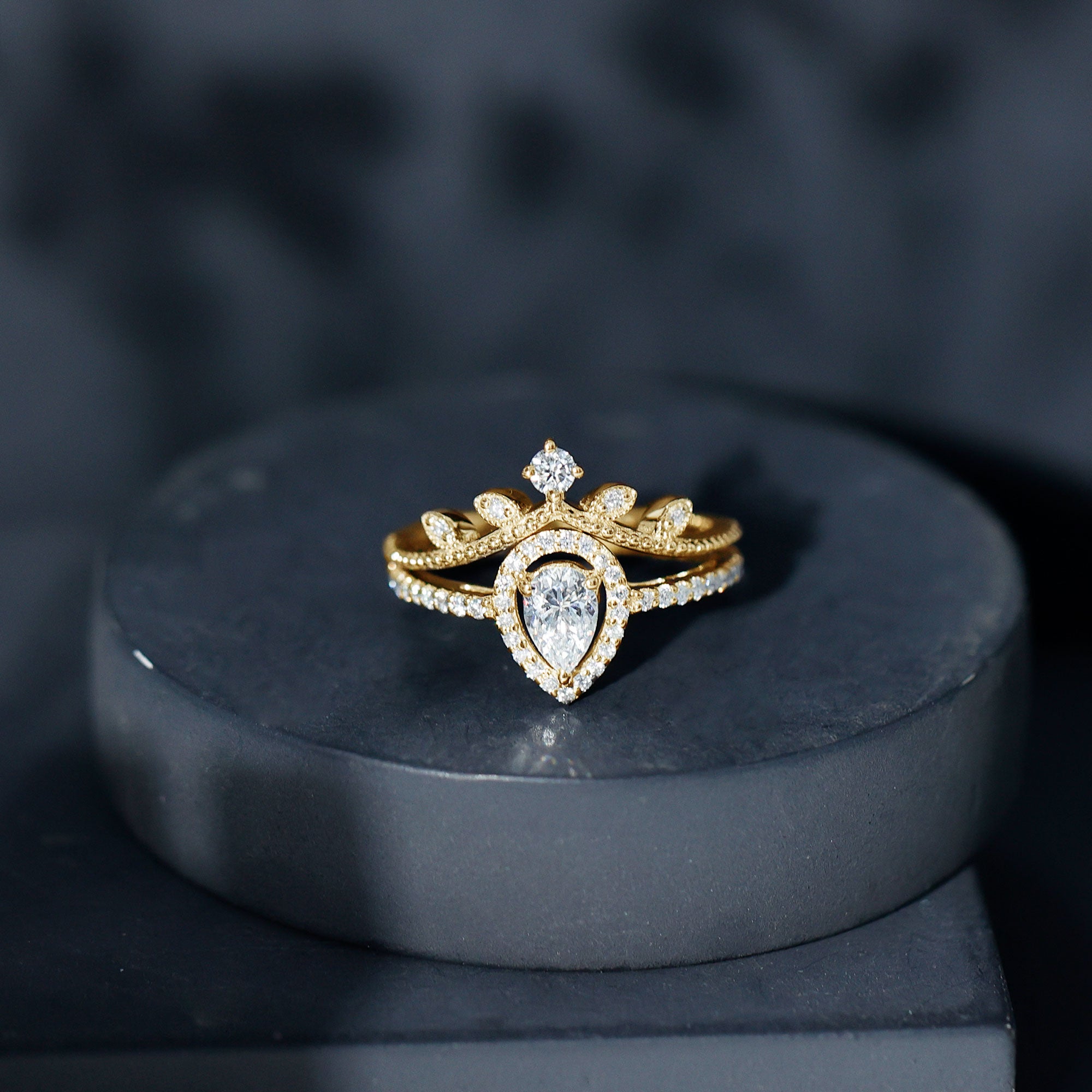 Vintage Style Moissanite Teardrop Wedding Ring Set