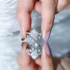 The Vintage Style Moissanite Teardrop Wedding Ring Set is designed for those who appreciate a unified bridal look with distinctive character. The teardrop silhouette offers graceful proportions, creating a focal point that feels refined and expressive without overpowering the hand.