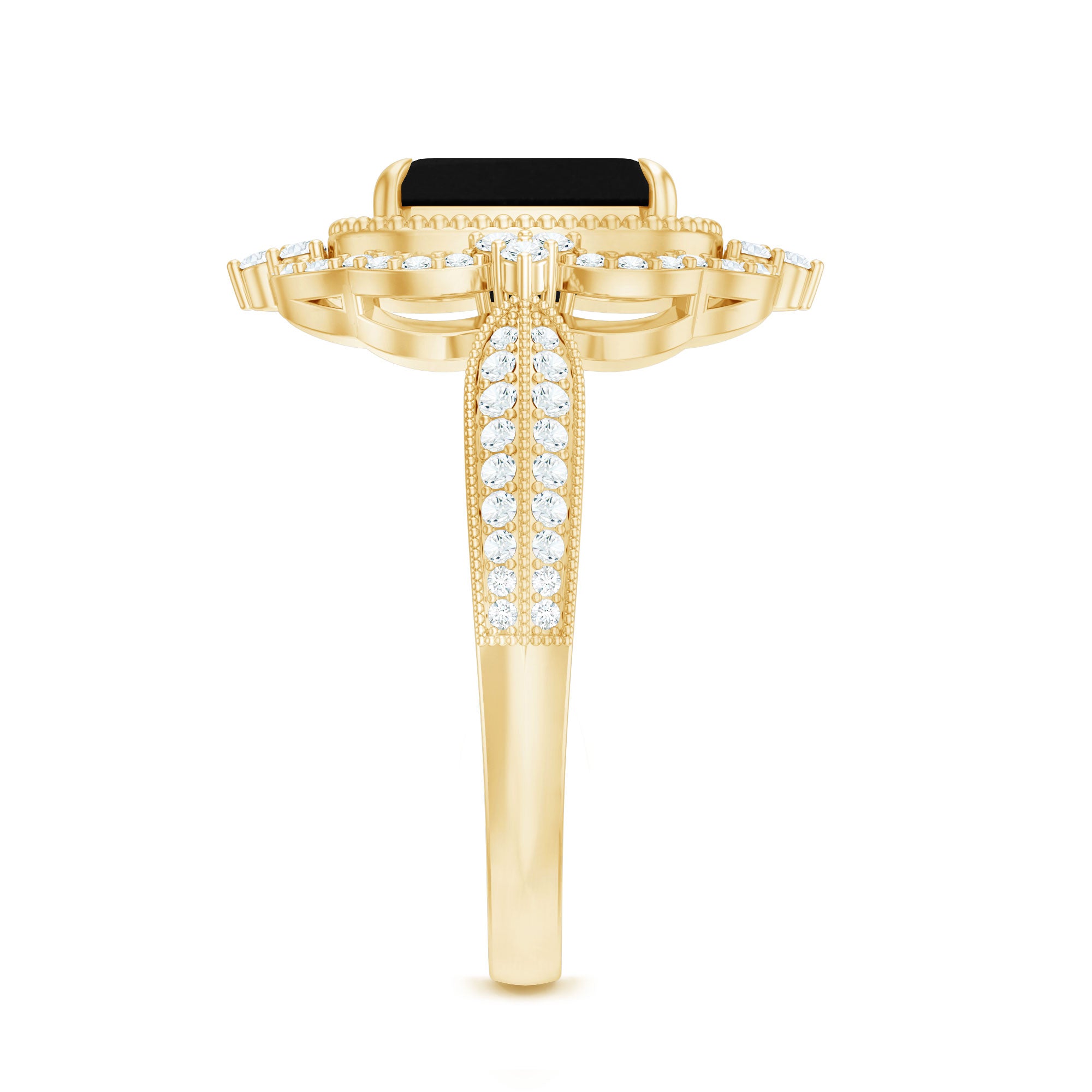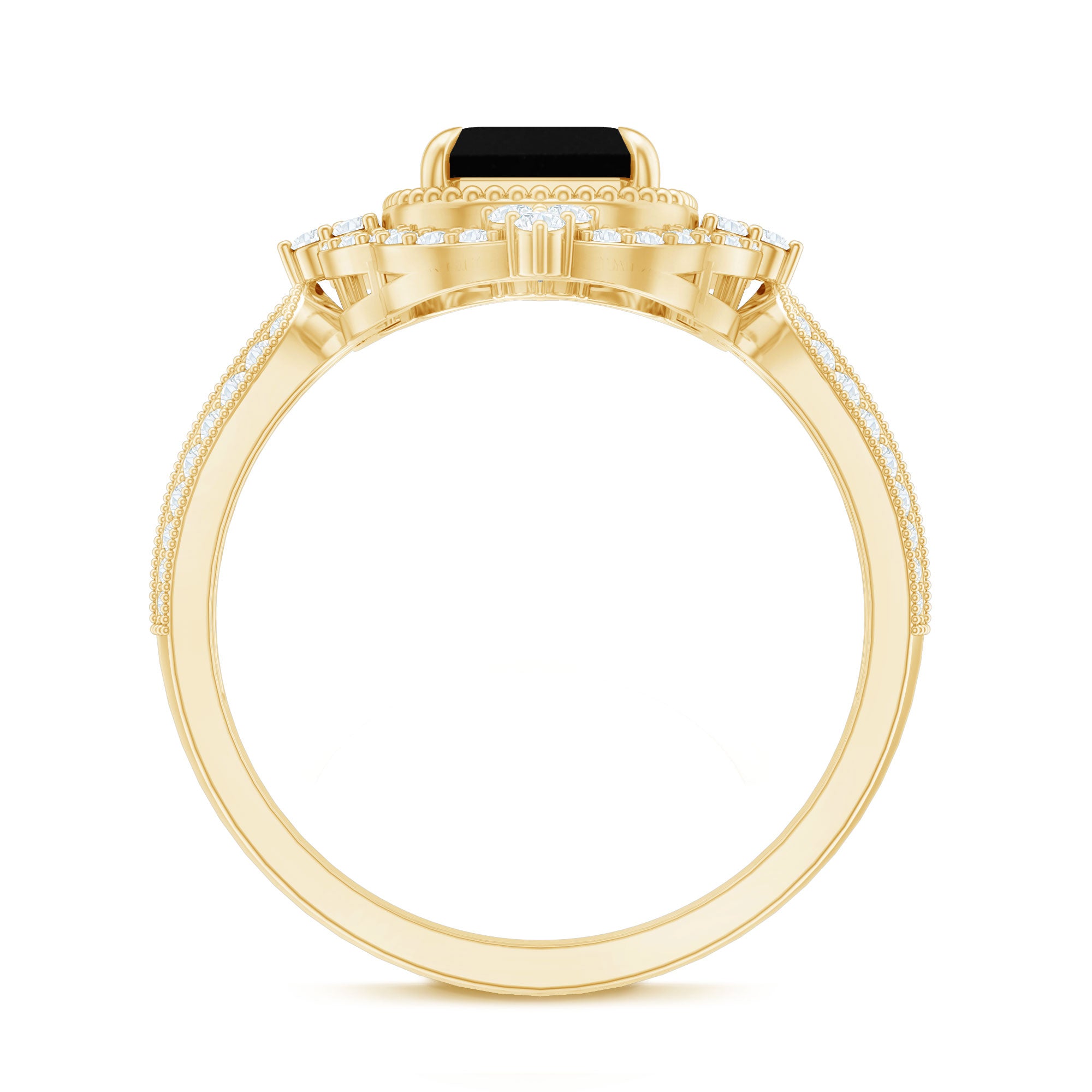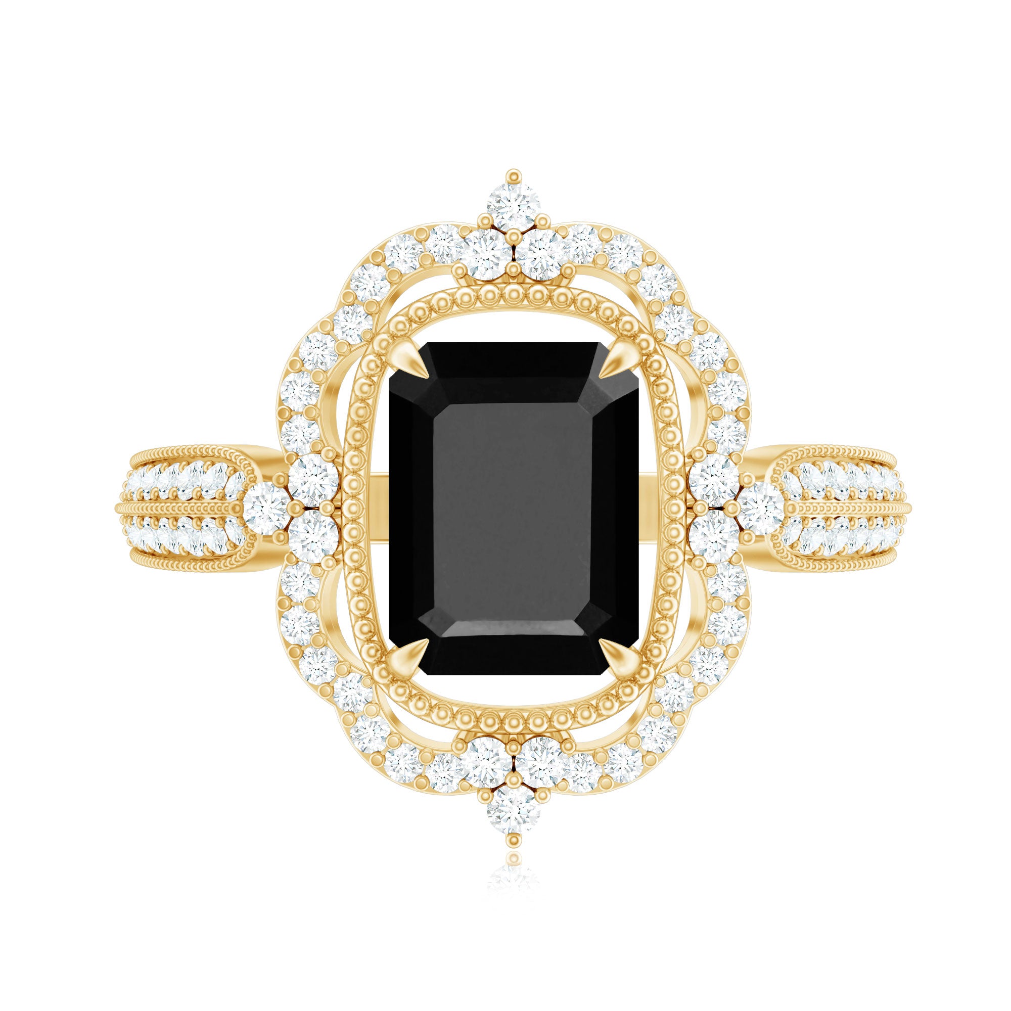 Vintage Style Octagon Created Black Diamond Floral Engagement Ring with Accent