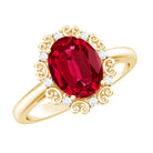 Vintage Style Oval Lab Created Ruby Engagement Ring with Diamonds