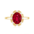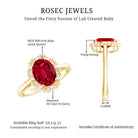 Mark your forever with our Oval Ruby Engagement Ring that blends vintage charm and modern sparkle in the most beautiful way. Designed with care and attention, this Cocktail Ring features a big 8X10 MM oval cut lab created ruby that grabs your attention. The ruby sits proudly in secure prong setting, surrounded by a halo made up of vintage inspired patterns and shining diamonds that add just the right amount of sparkle. The mix of the bright AAAA quality ruby and sparkling HI-SI quality diamonds creates an eye-catching contrast that feels both classic and fresh. The design has a lovely old-world feel but with a modern twist, making it perfect for someone who loves something special yet timeless. Plus, choosing a lab created ruby means you are making a smart, budget-friendly, and eco-conscious decision without giving up on beauty or quality. This Lab Created Ruby and Diamond Engagement Ring is a symbol of lasting love that shines bright for years to come. With its unique design and sustainable roots, this Vintage Ruby Ring is ready to be a treasured part of your story.