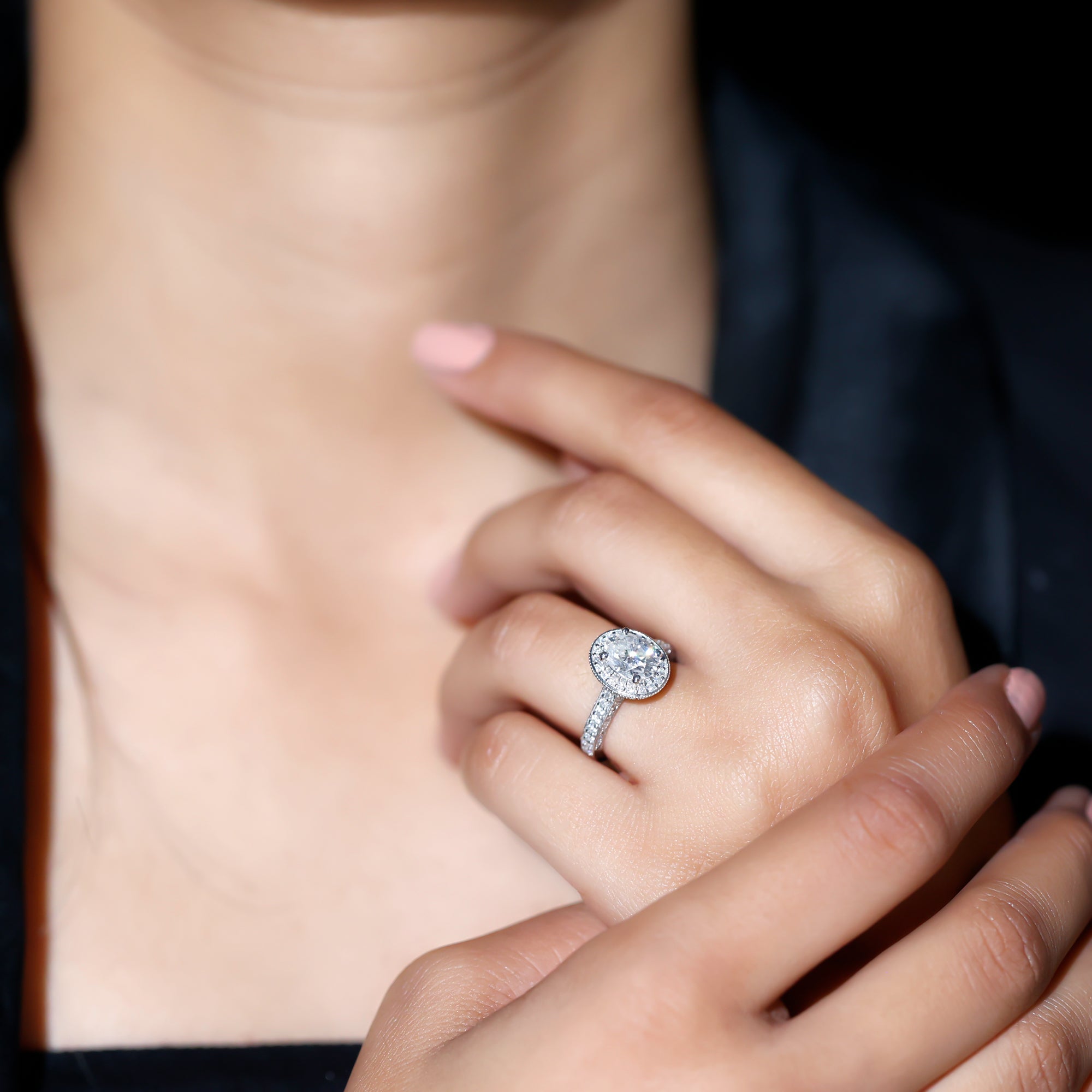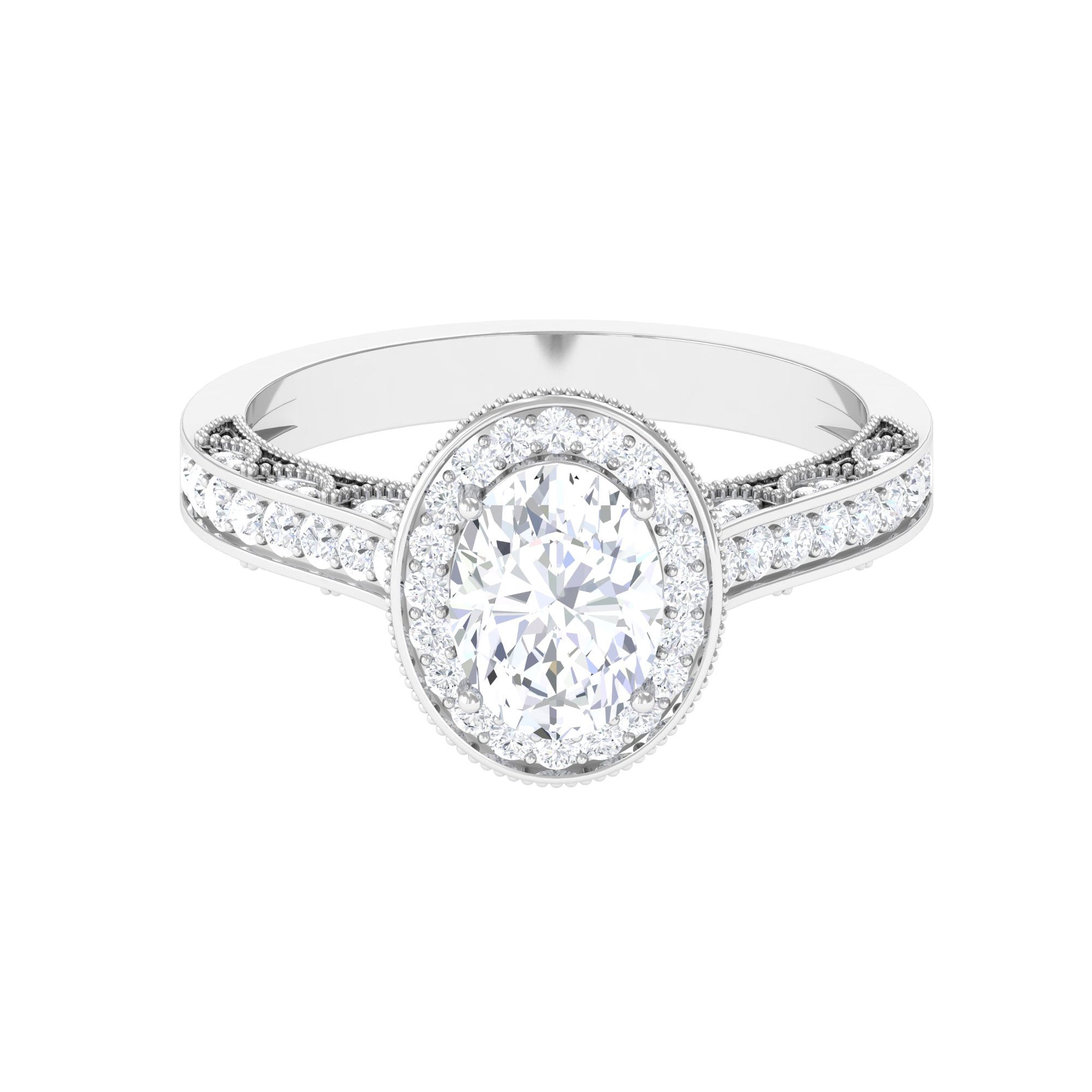 Vintage Style Oval Simulated Diamond Halo Engagement Ring