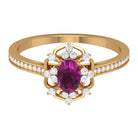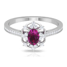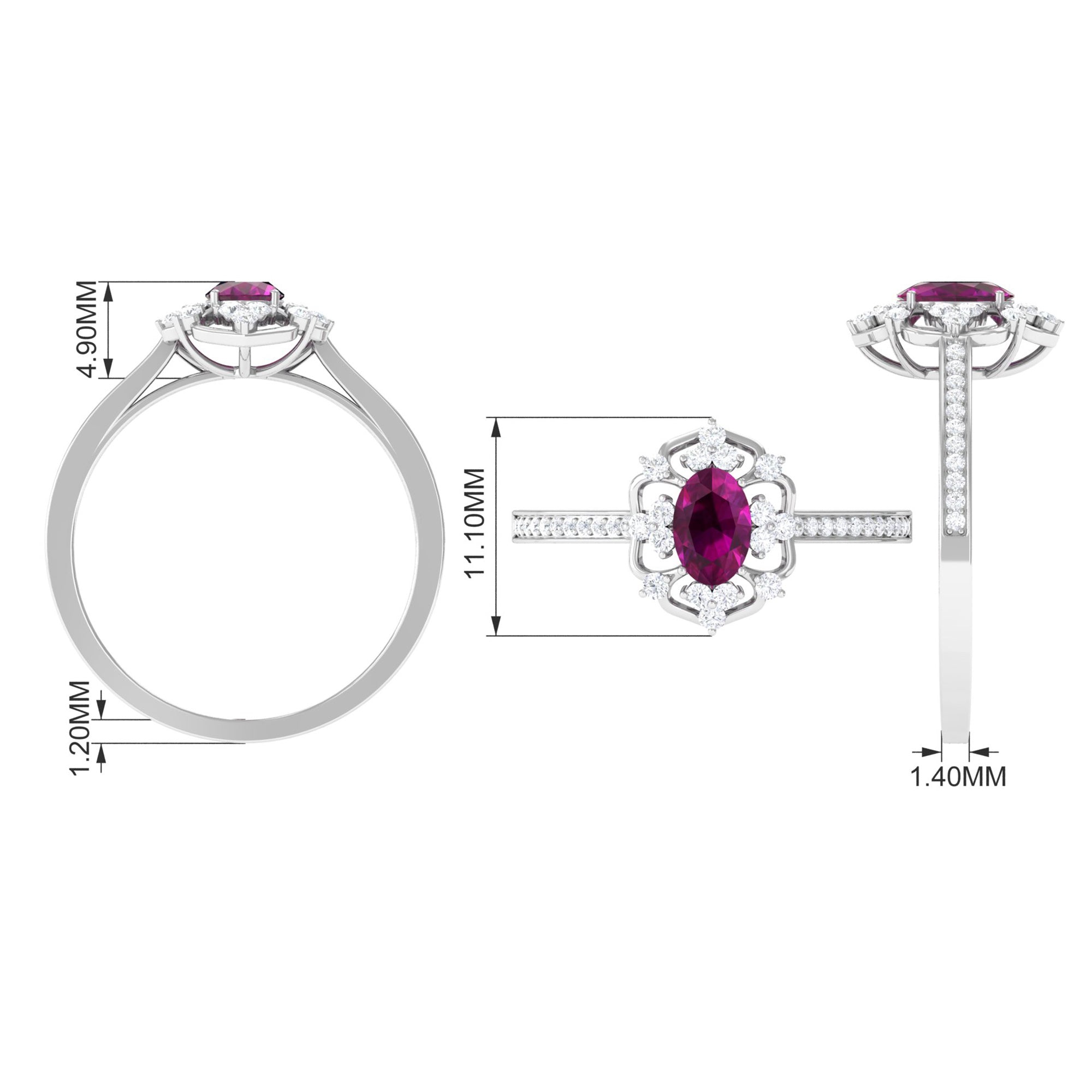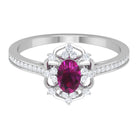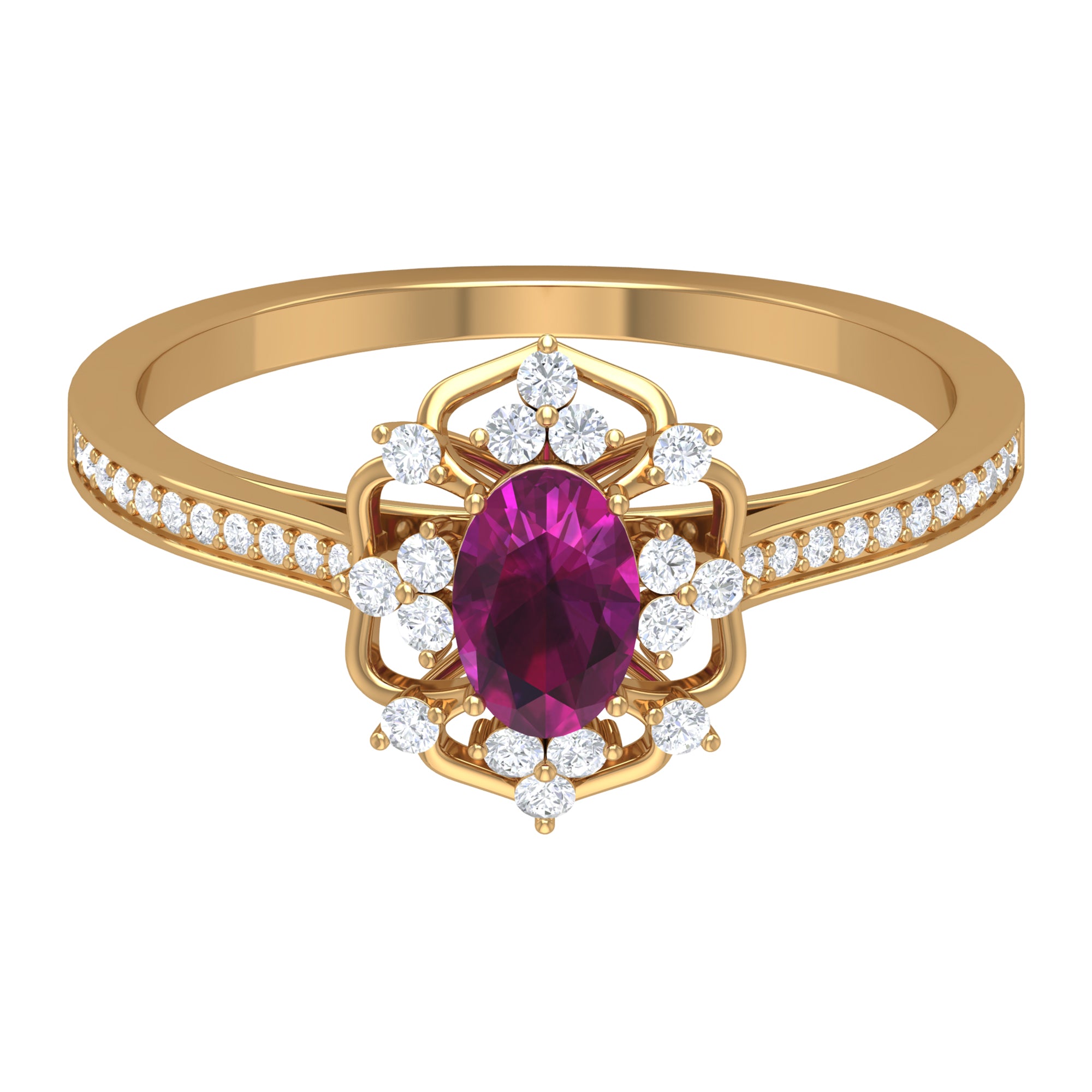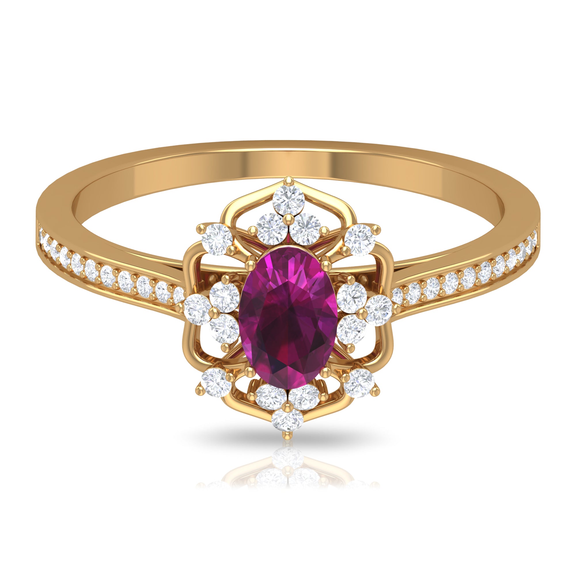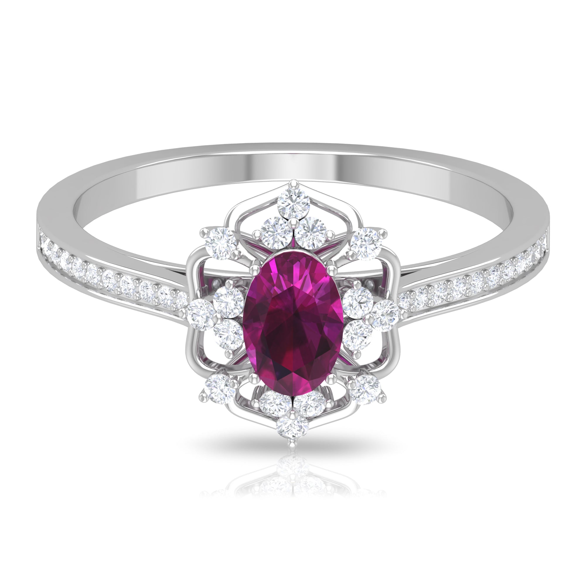 Indulge in the timeless allure of this Vintage Style Rhodolite and Diamond Flower Engagement Ring. The centerpiece features a captivating rhodolite, exuding vintage charm and a rich hue. The intricate setting forms a floral motif with delicate Diamond, adding a touch of brilliance and sophistication. This ring seamlessly combines classic elegance with a hint of nostalgia, making it an exquisite choice for an engagement or a statement piece. The vintage-inspired design evokes romance and showcases the enduring beauty of both rhodolite and Diamond. Celebrate your love with a ring that beautifully blends the past and the present in a stunning display of craftsmanship.