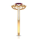Vintage Style Rhodolite and Diamond Flower Engagement Ring