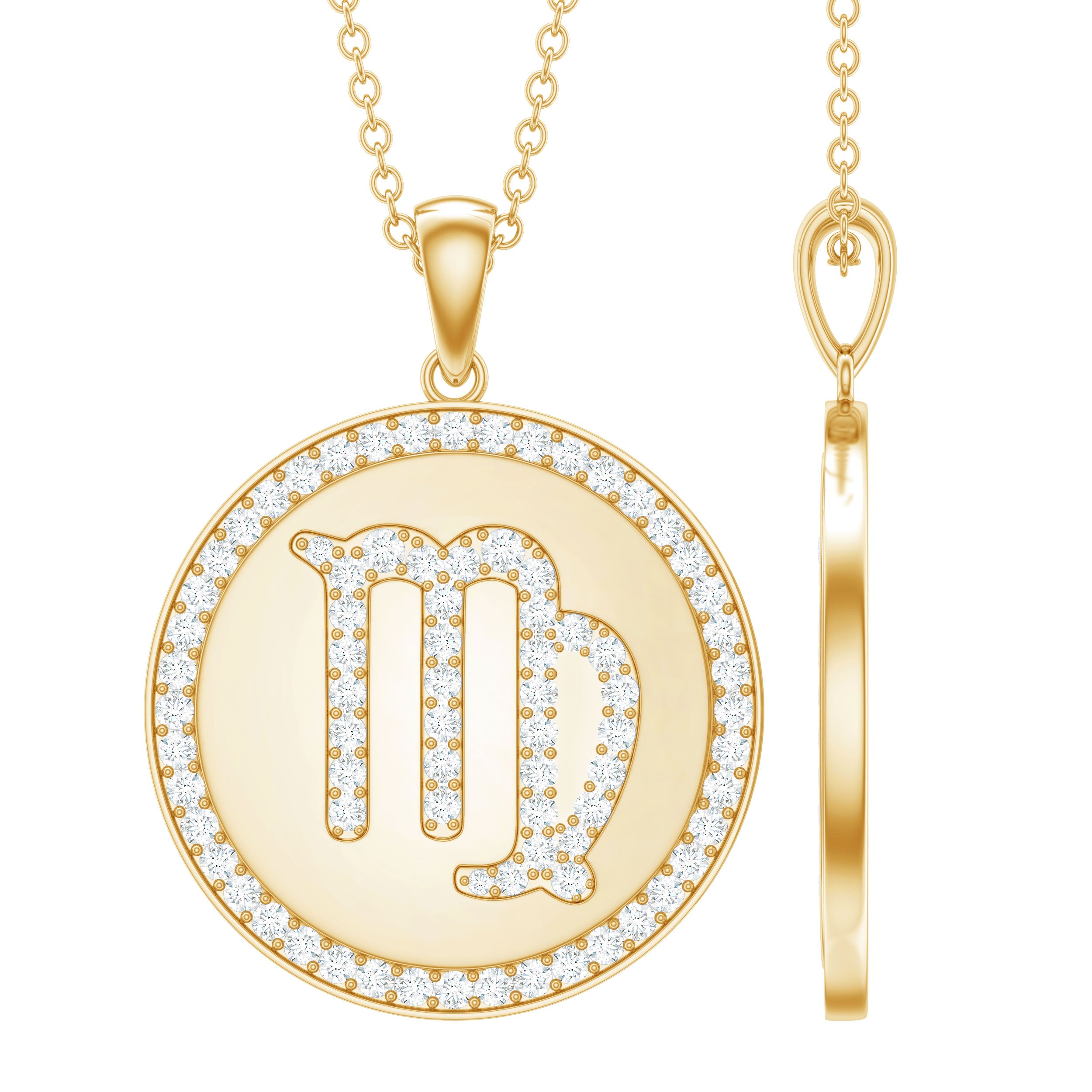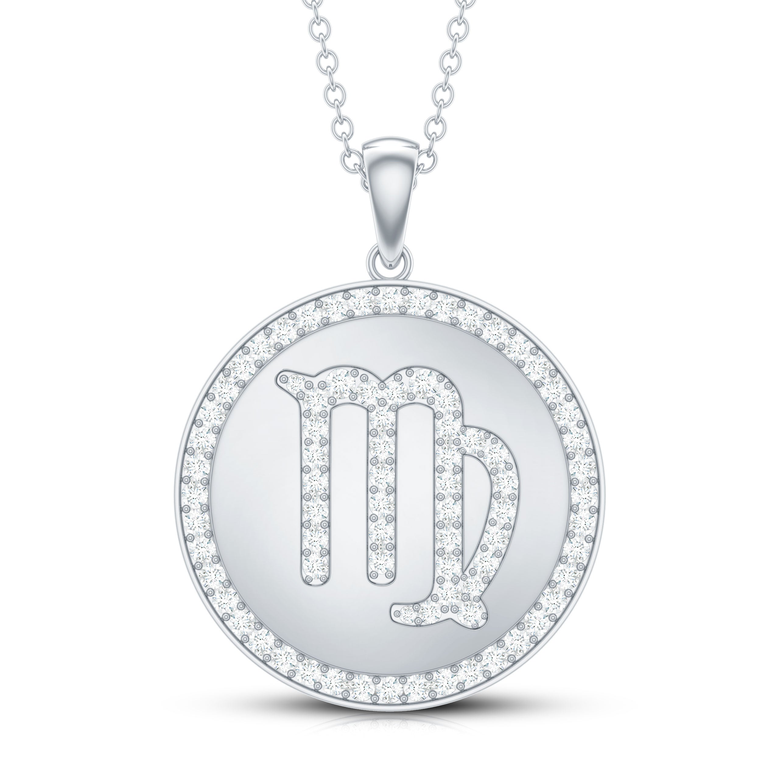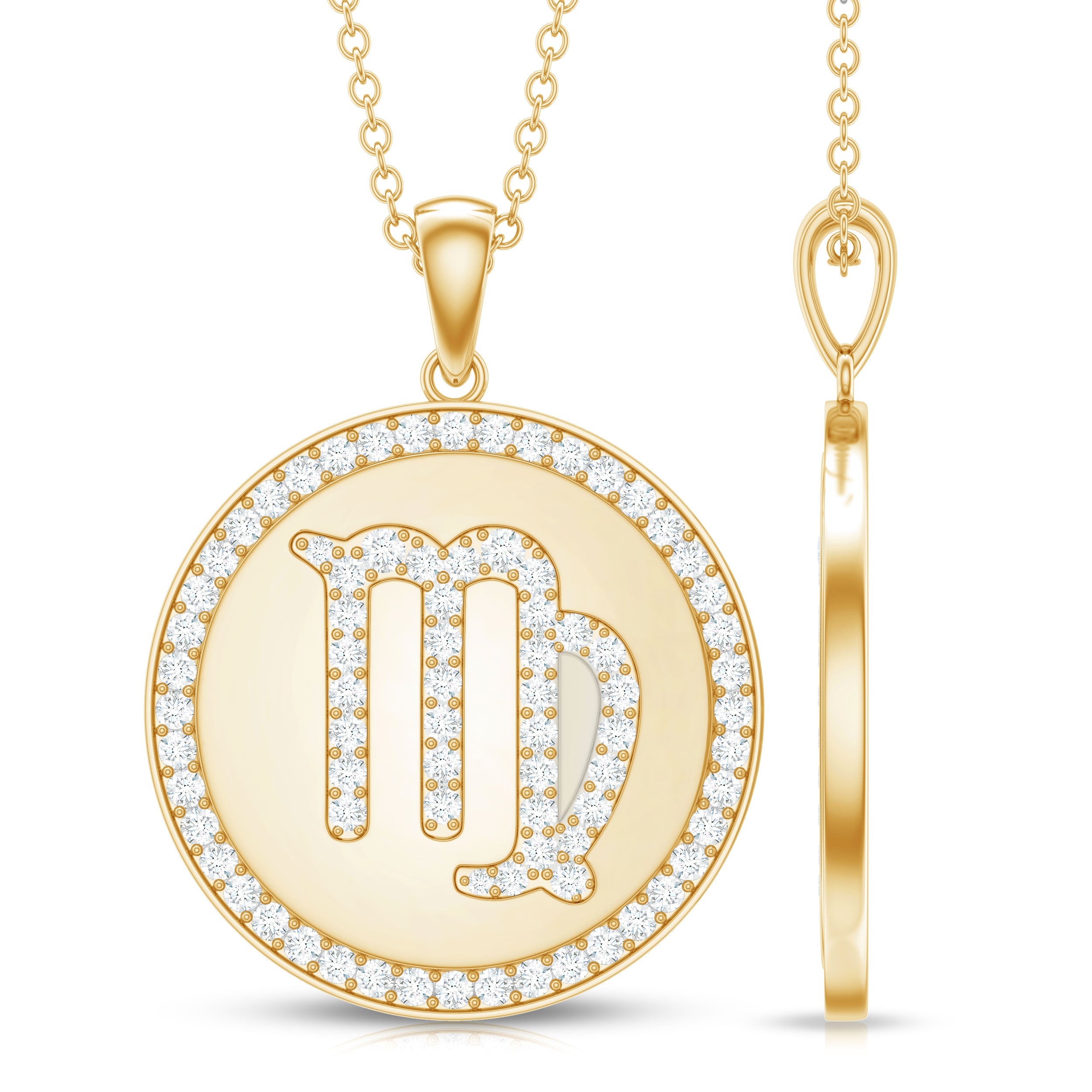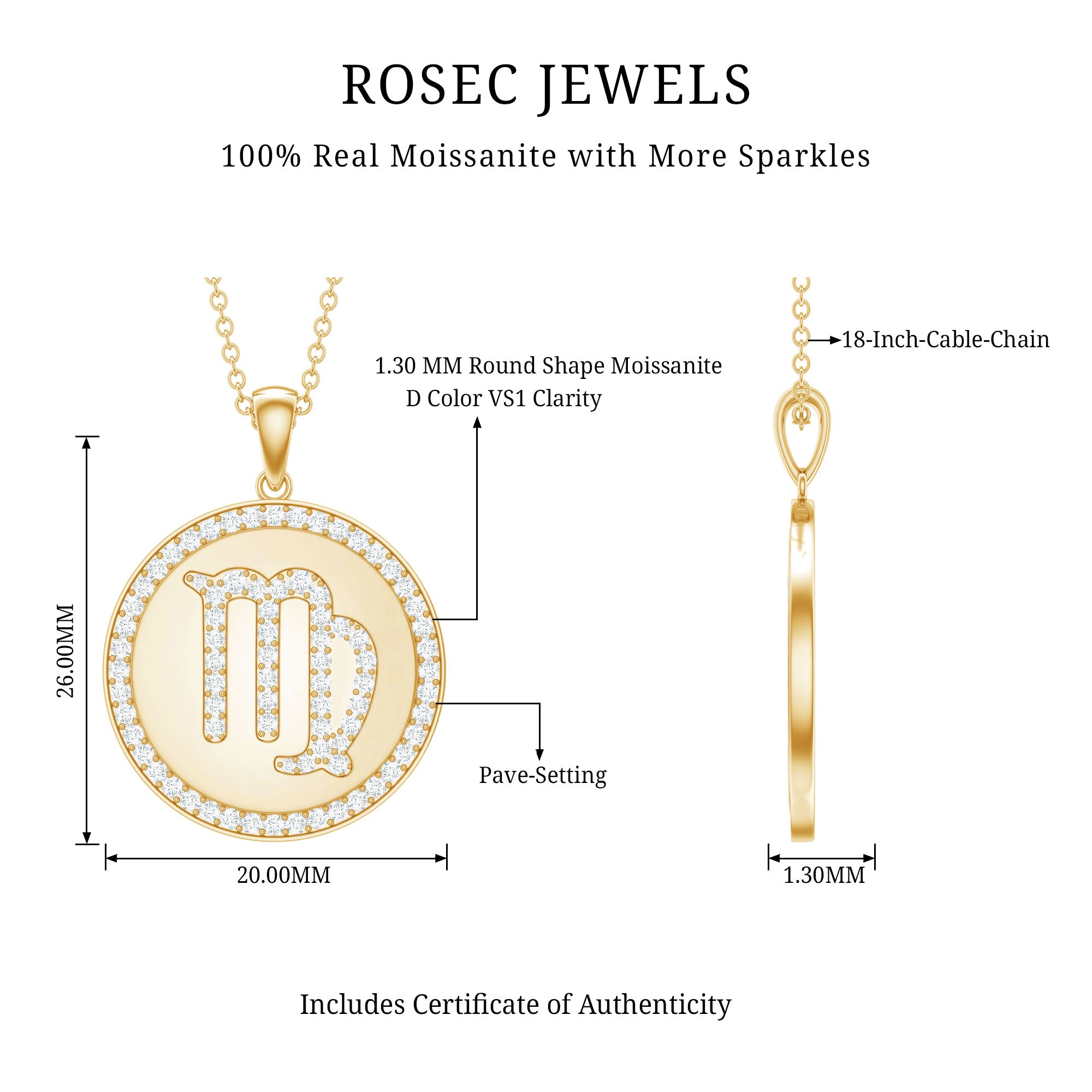 Virgo Zodiac Sign Disc Pendant with Pave Set Moissanite