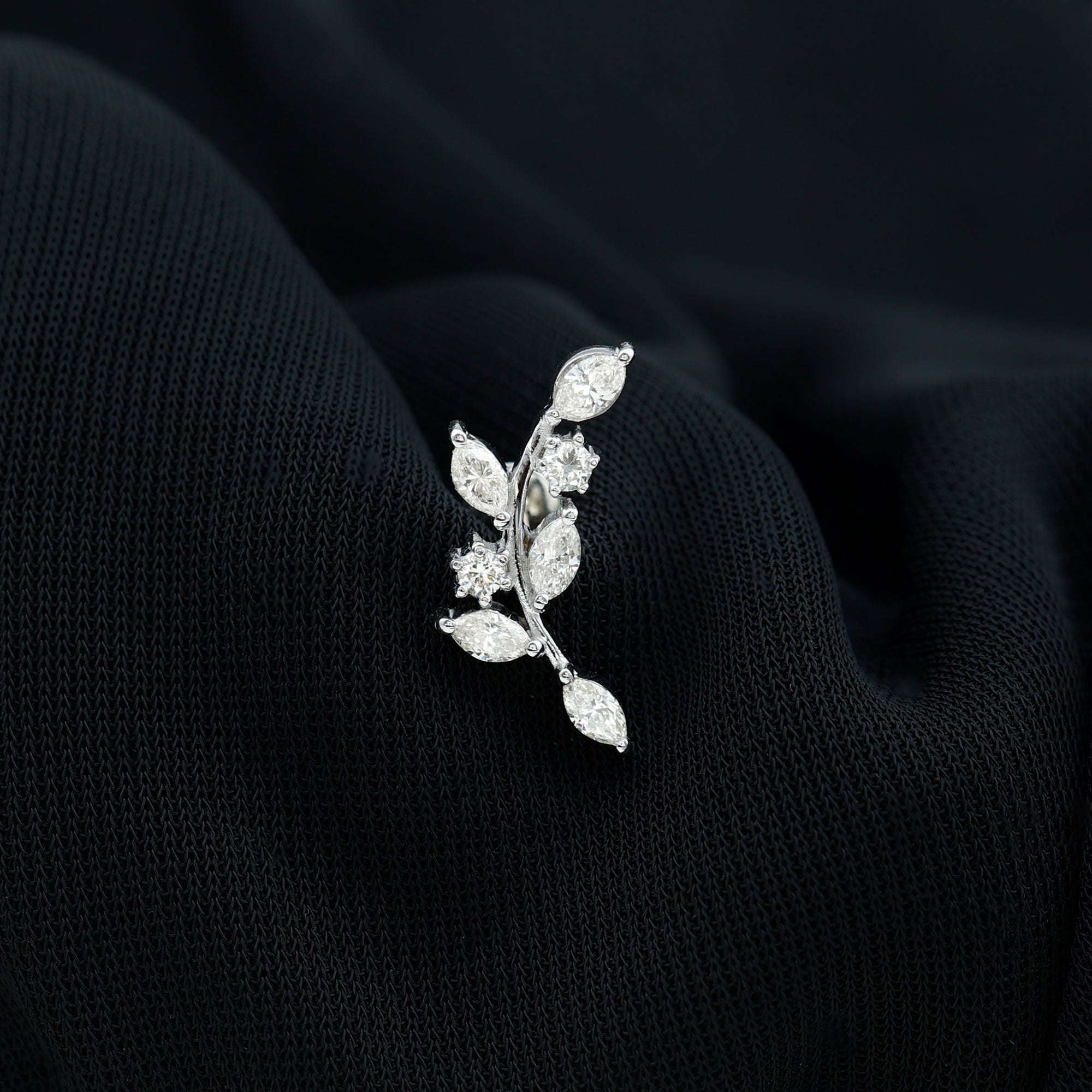 Womens Marquise Diamond Leaf Crawler Earring