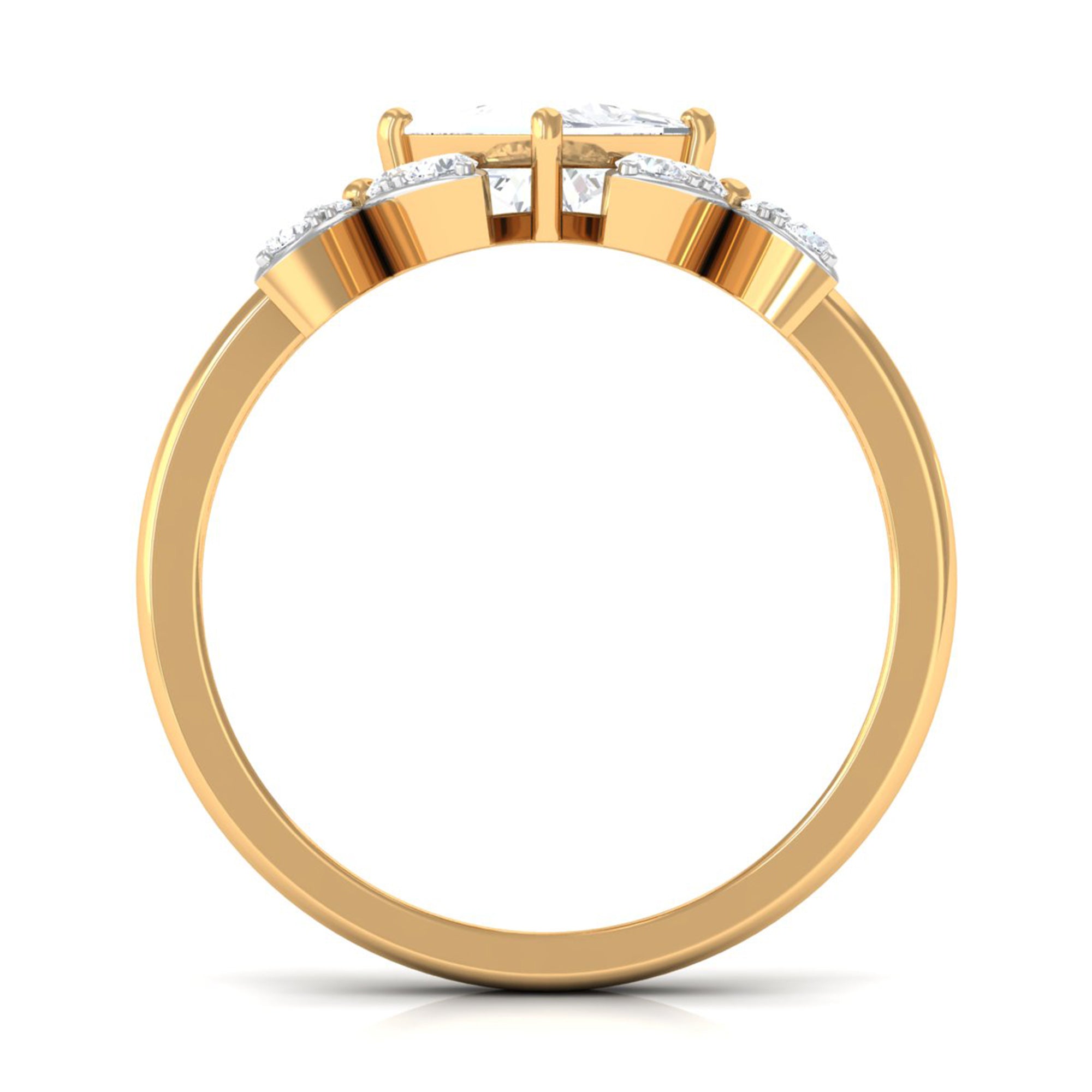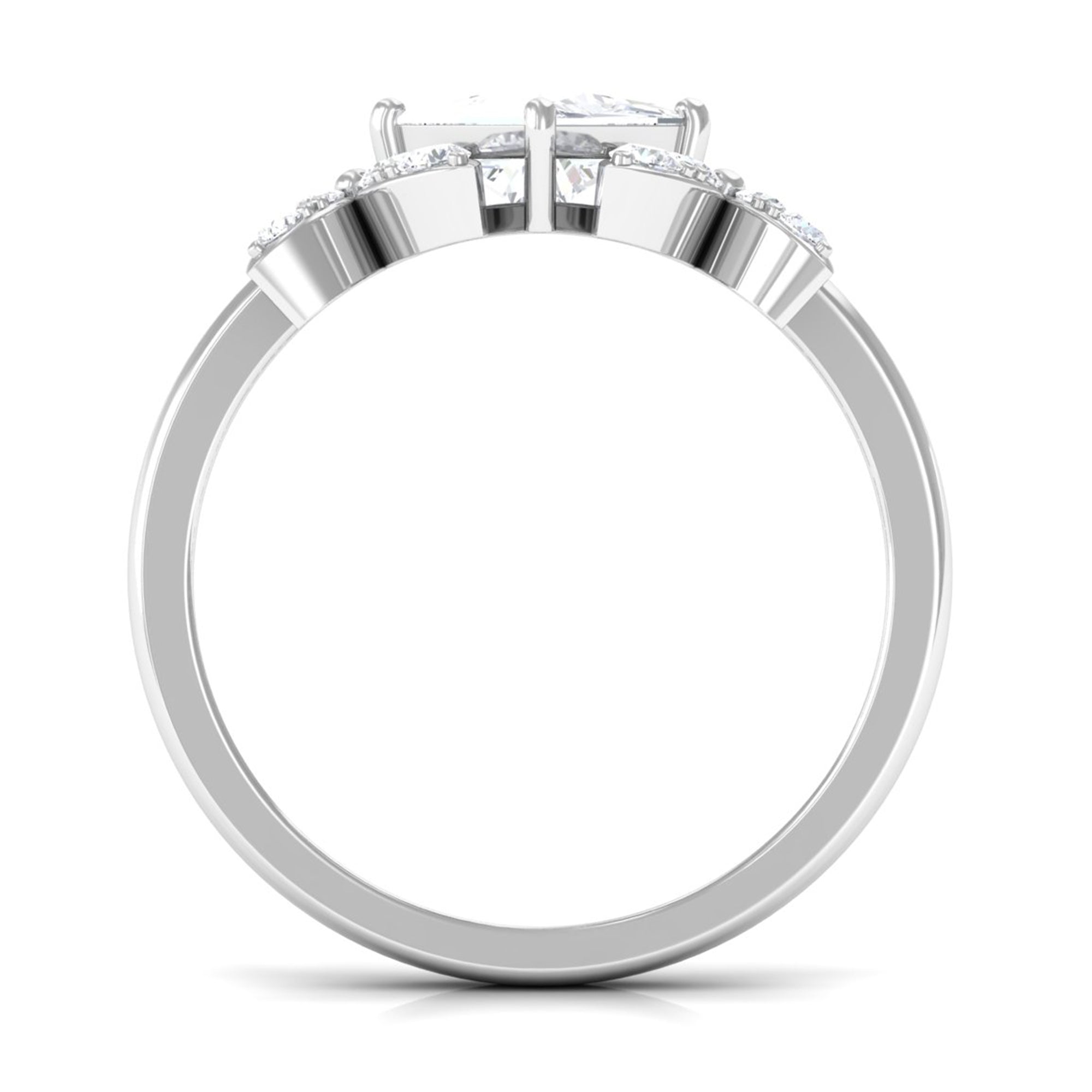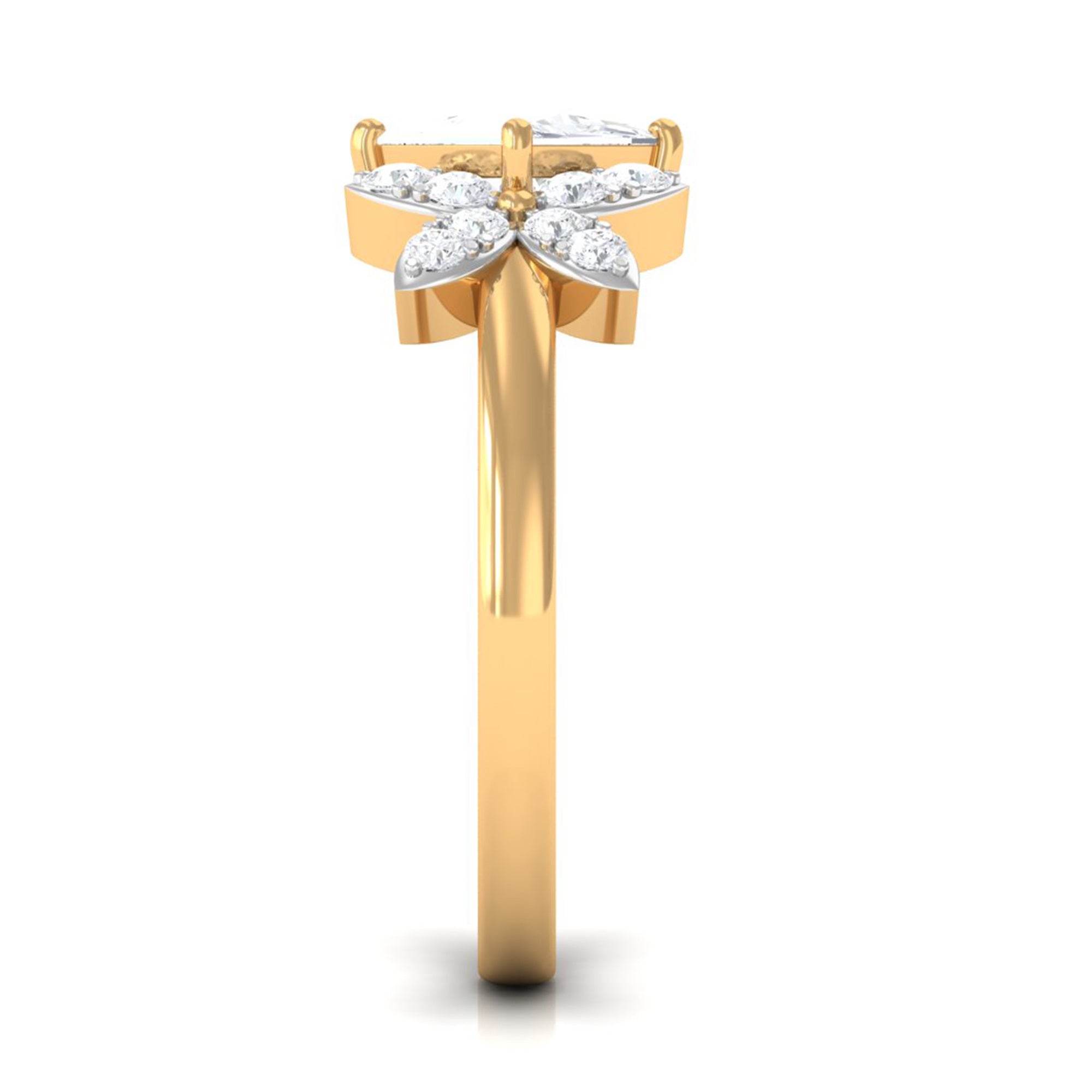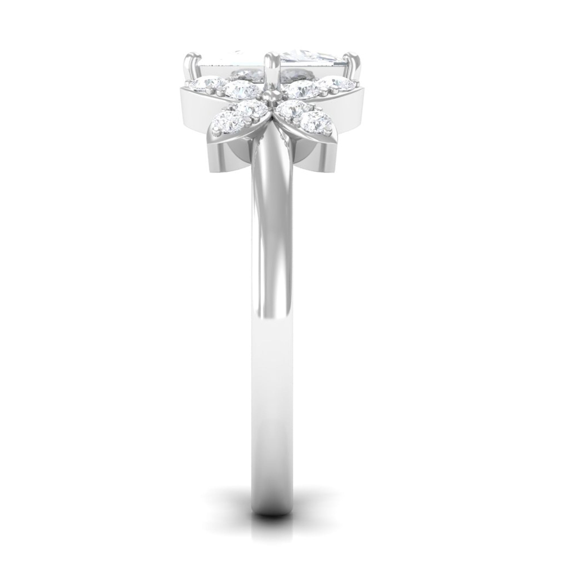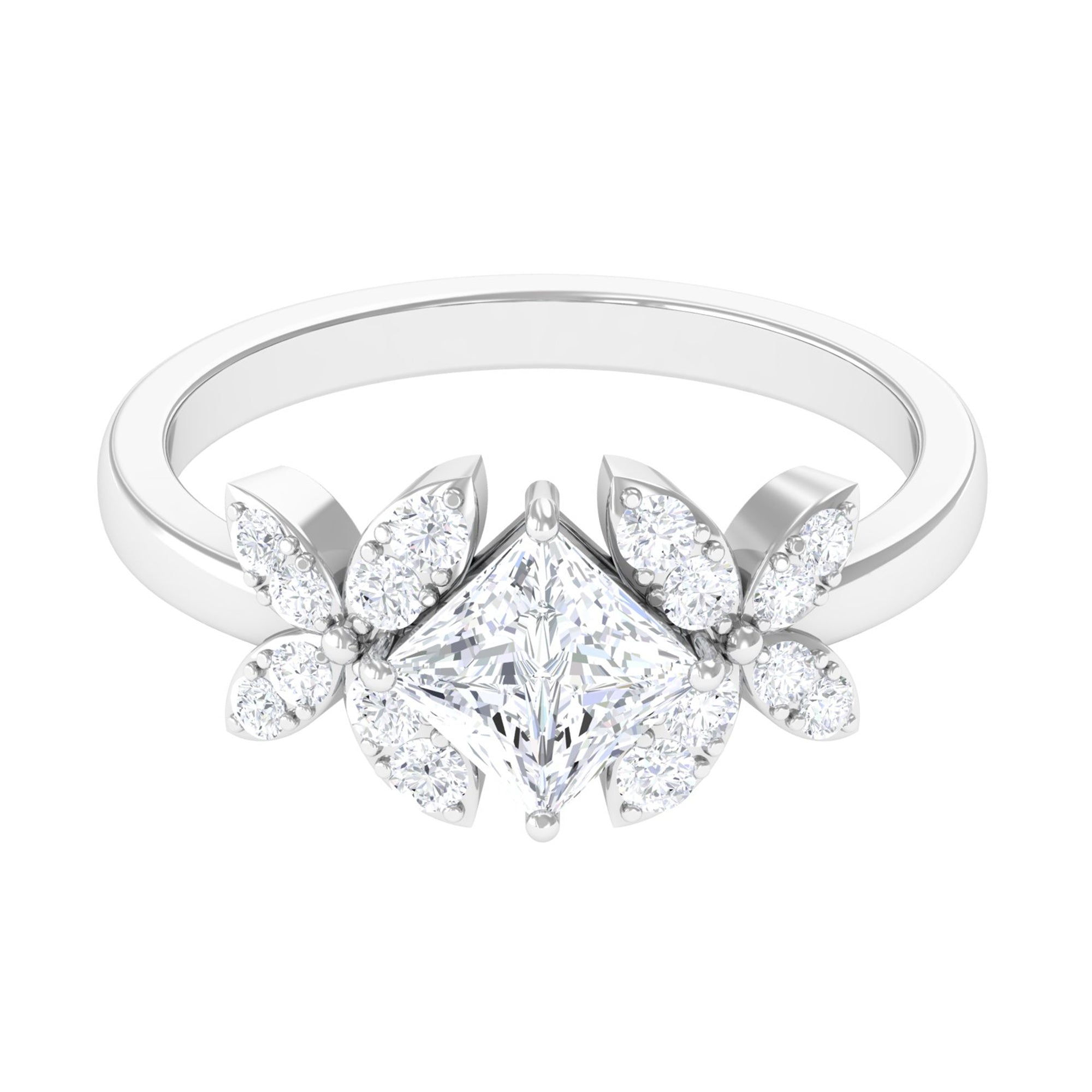 The subtle brilliance and magical charm speak with this CZ Ring. Adorned with Round and Princess Cut Zircon in Prong Setting on Floral Engagement Ring.