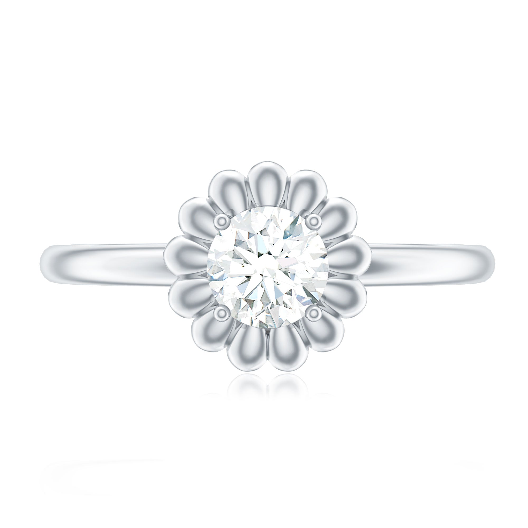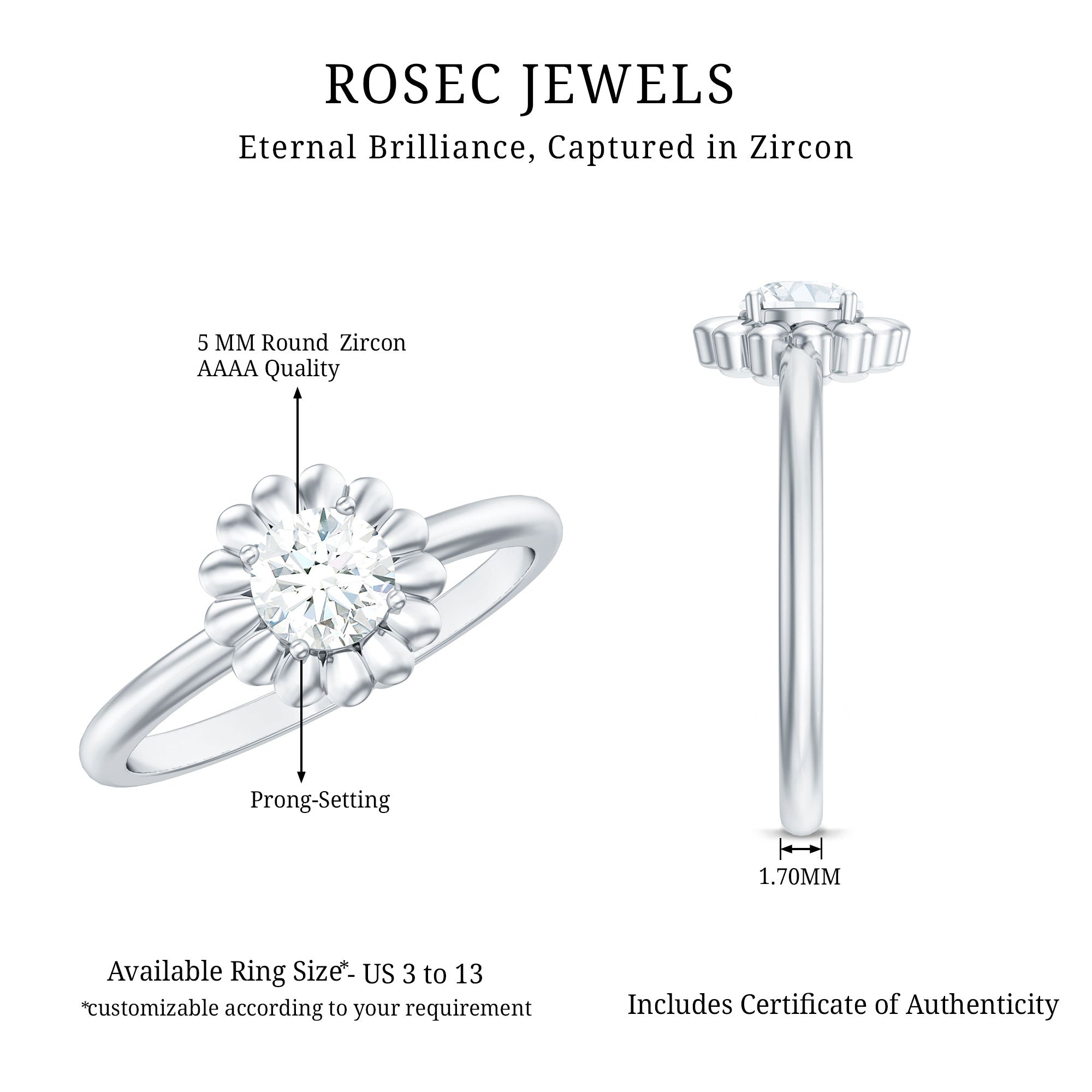 Attractive and superb this Solitaire Ring sure to leave you speechless, adorned with Round Cut Zircon in Prong Setting with petals.