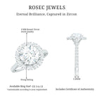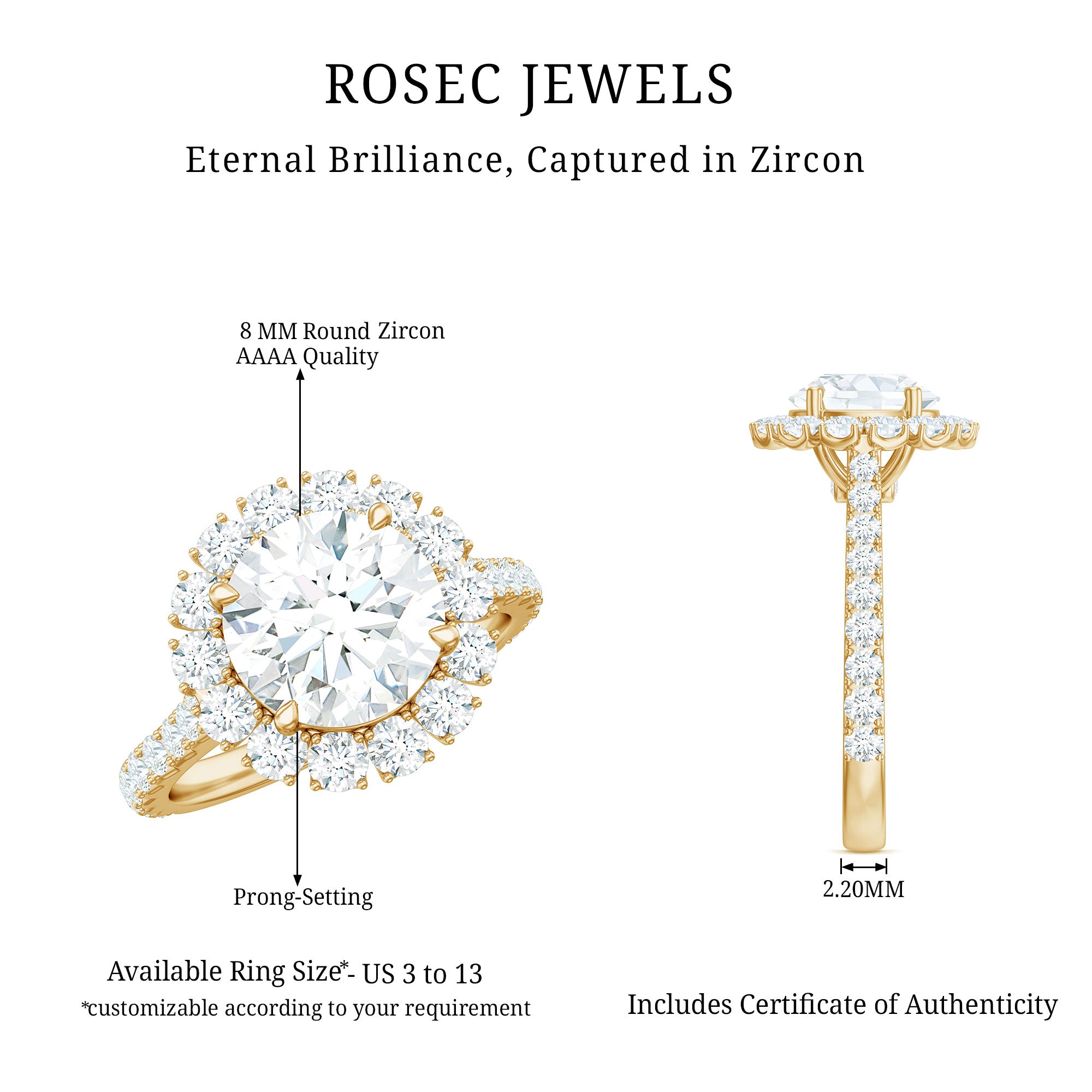Zircon Round Engagement Ring with Floating Halo and Side Stones