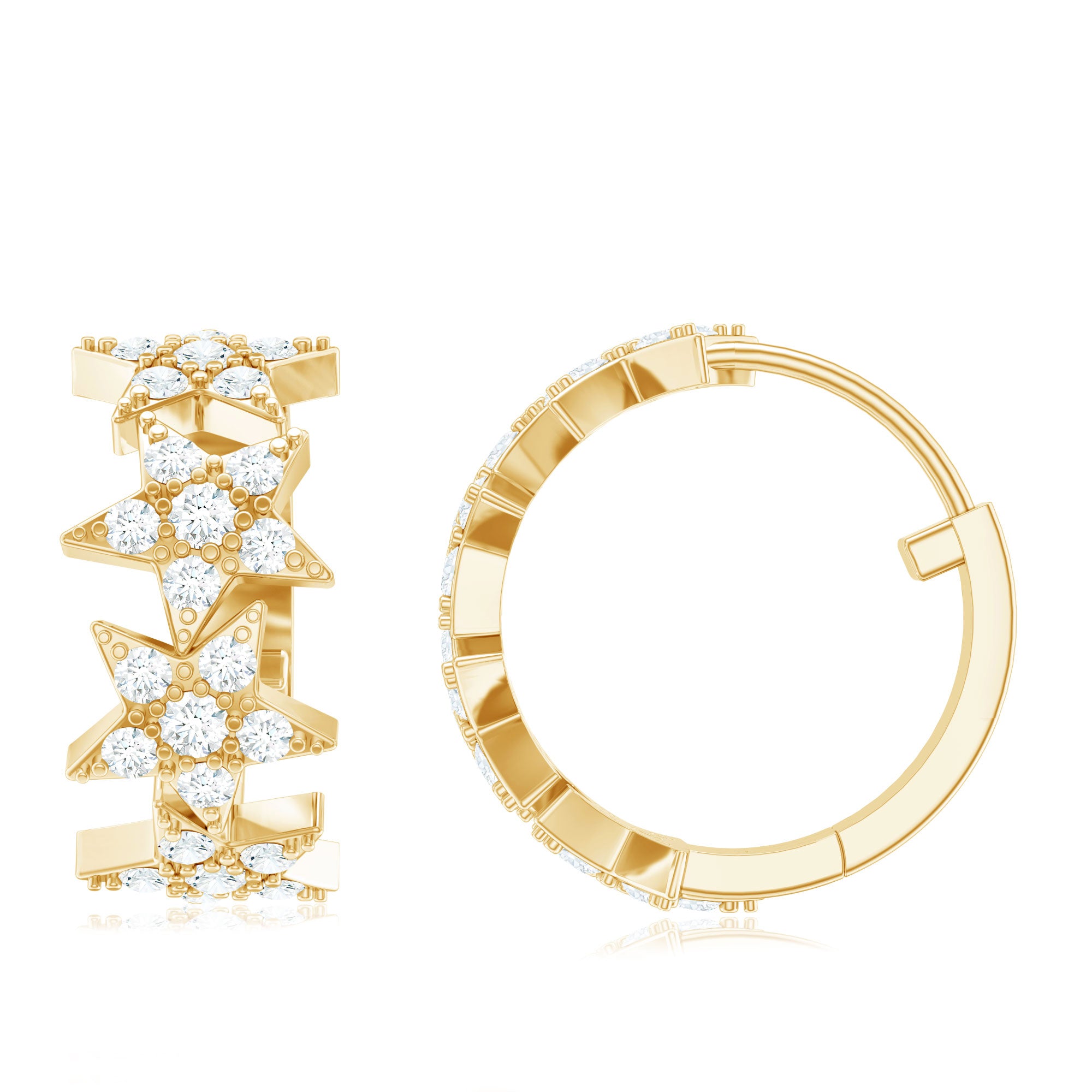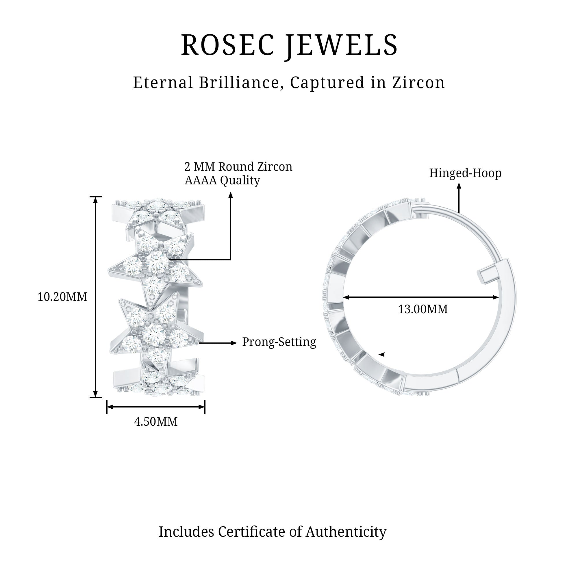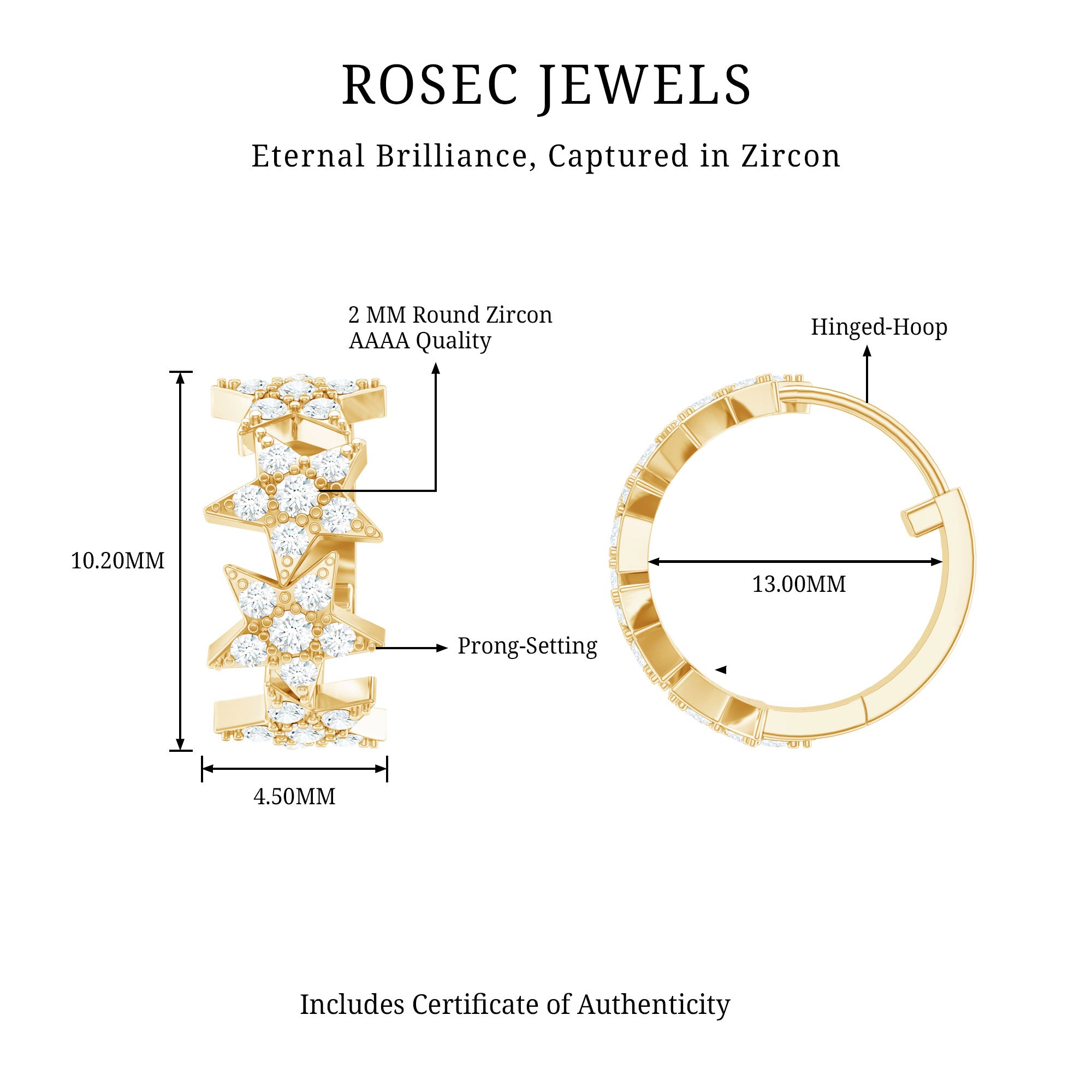 These Star Hoop Earrings are stunning celestial jewelry, adorned with Round Cut Zircon in Prong Setting and makes a stunning present for little ones.