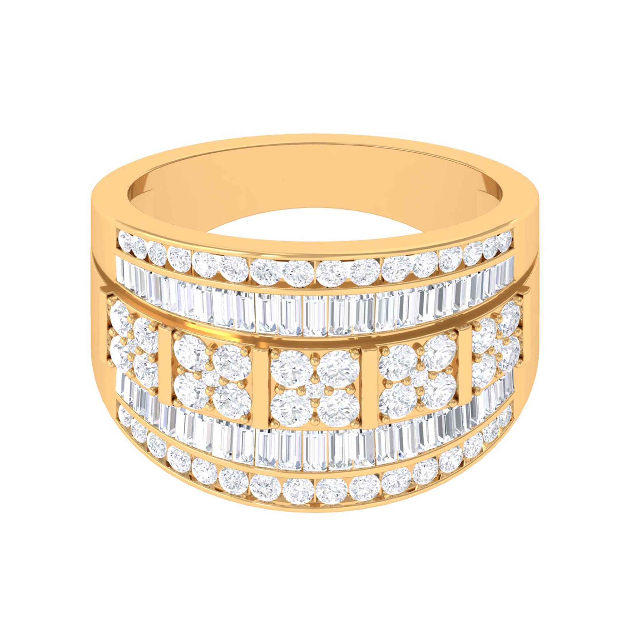 Make a sweetest present for her by presenting this Zircon Band Ring. Adorned with Round and Baguette Cut Cubic Zirconia is a stand alone piece.