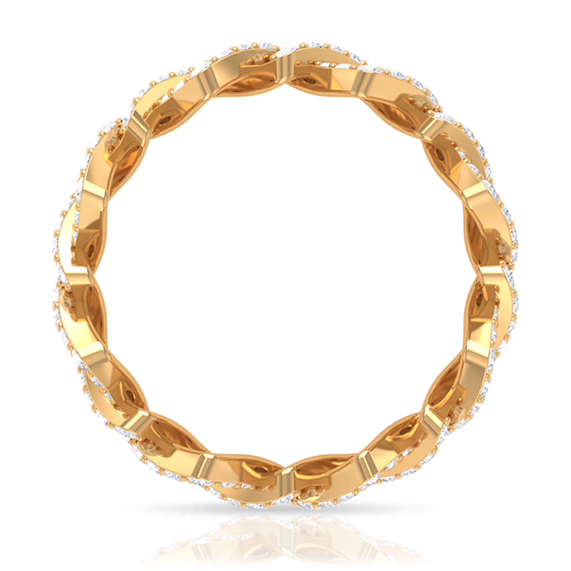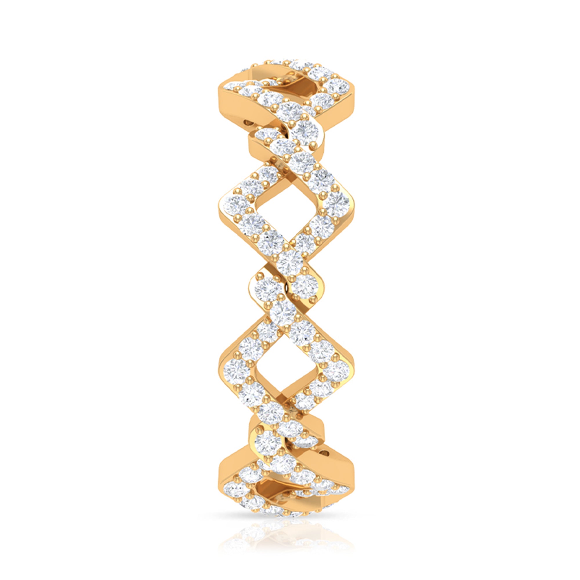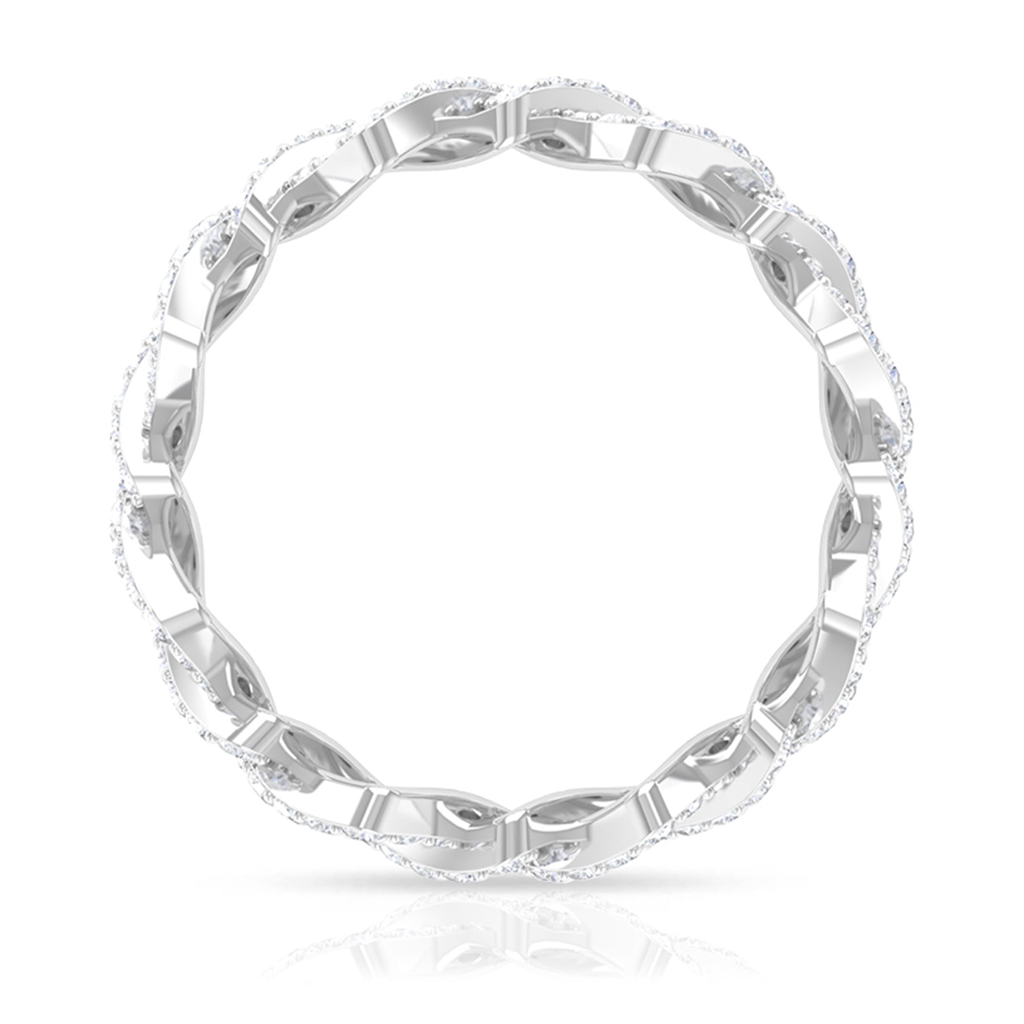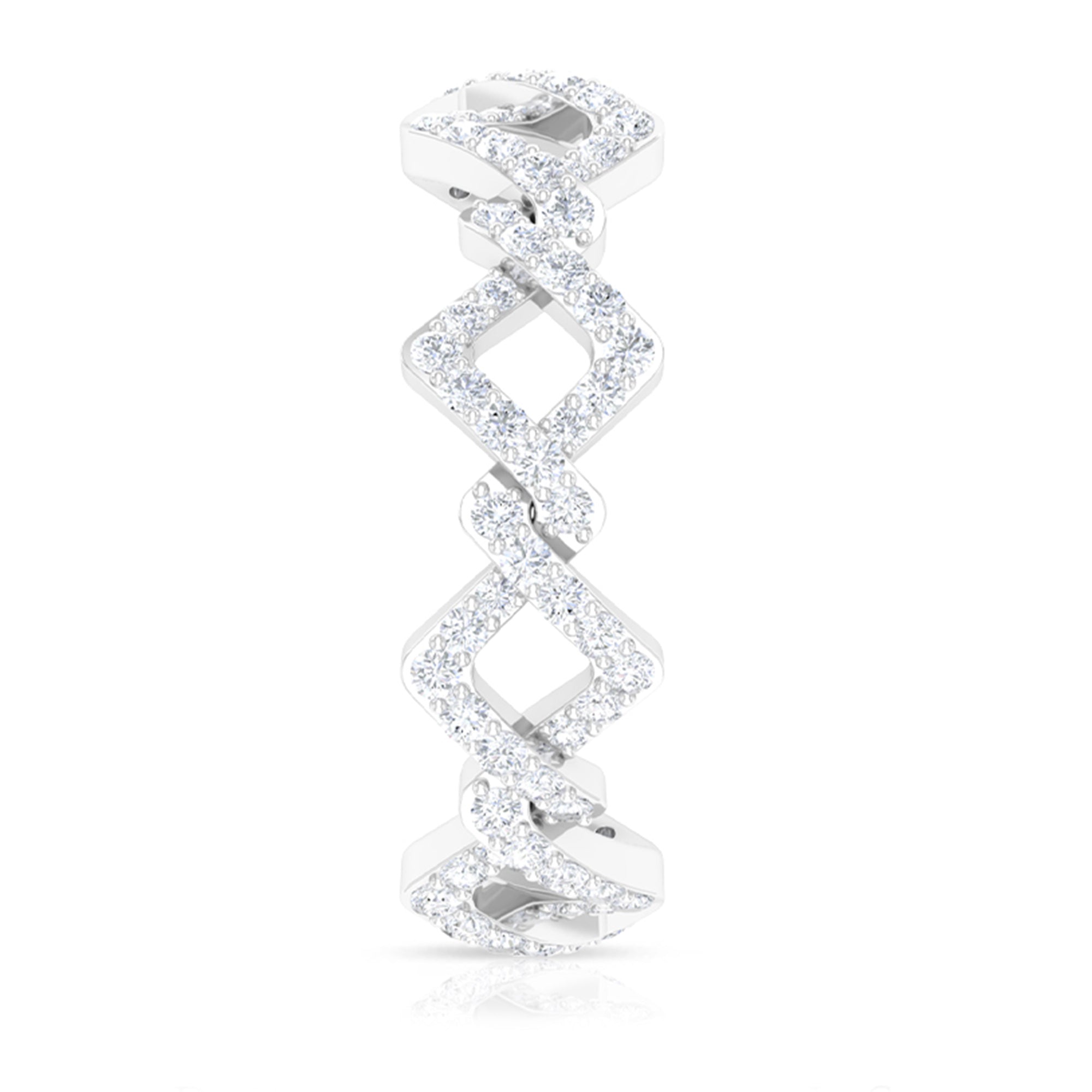 Complete your look with this Eternity Band Ring adorned with Round Cut Zircon in Surface Prong Setting and a Twisted pattern makes it a stand-alone piece.