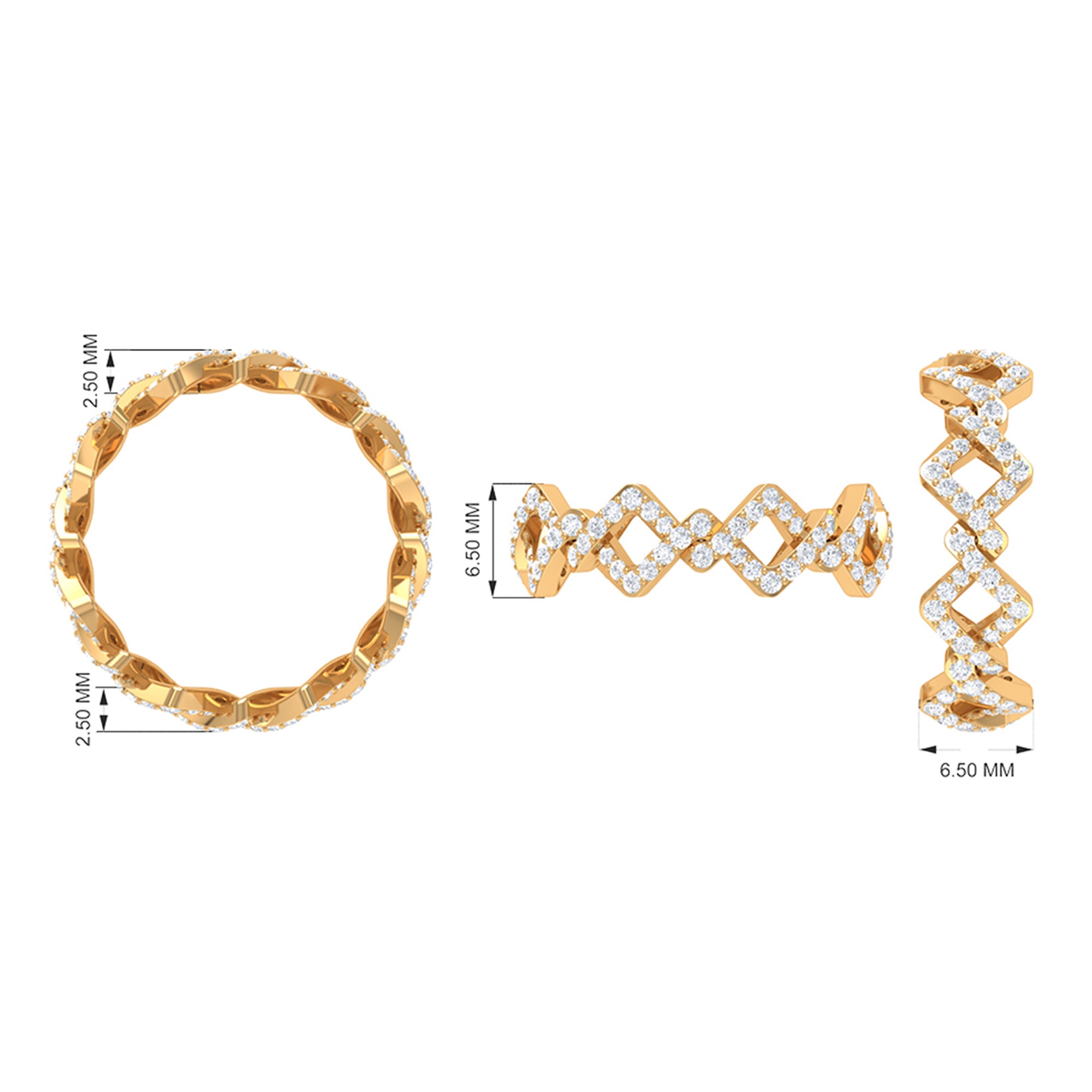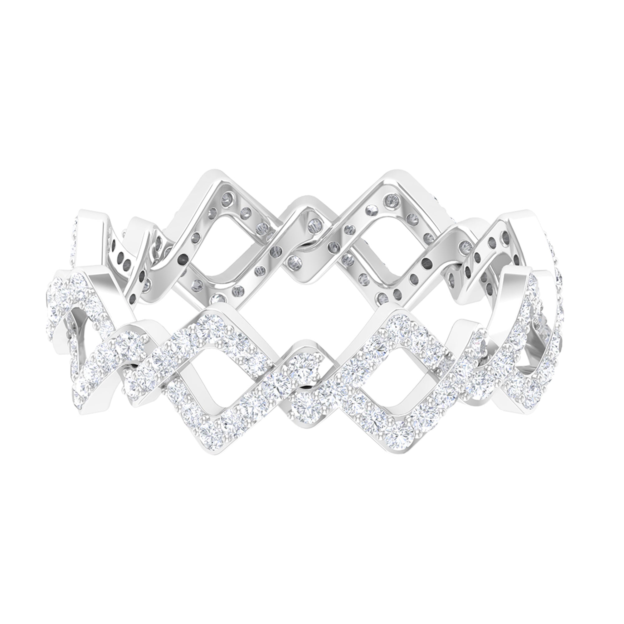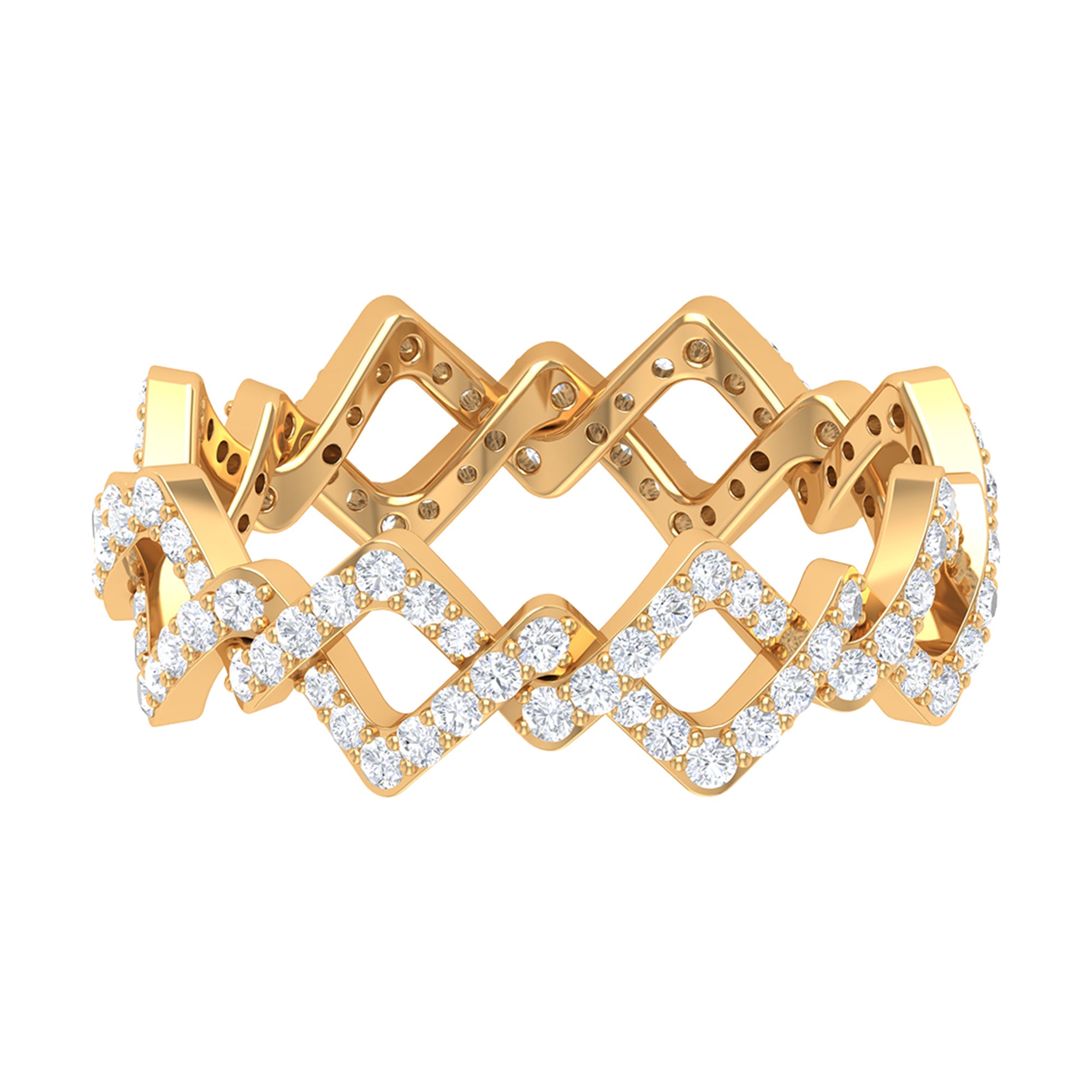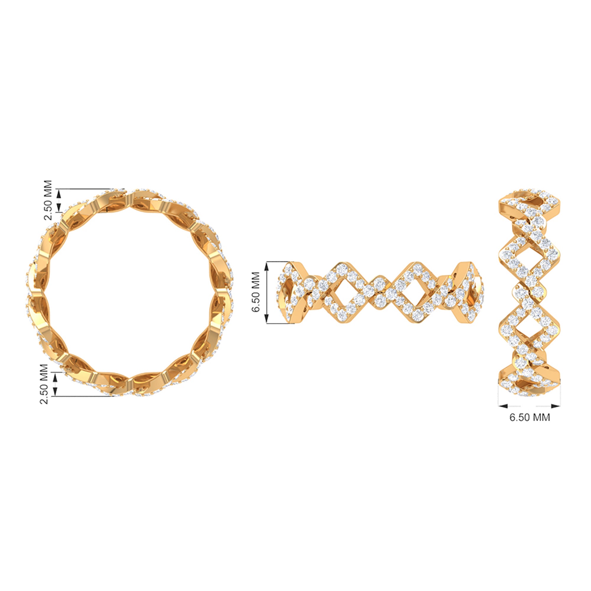Complete your look with this Eternity Band Ring adorned with Round Cut Zircon in Surface Prong Setting and a Twisted pattern makes it a stand-alone piece.