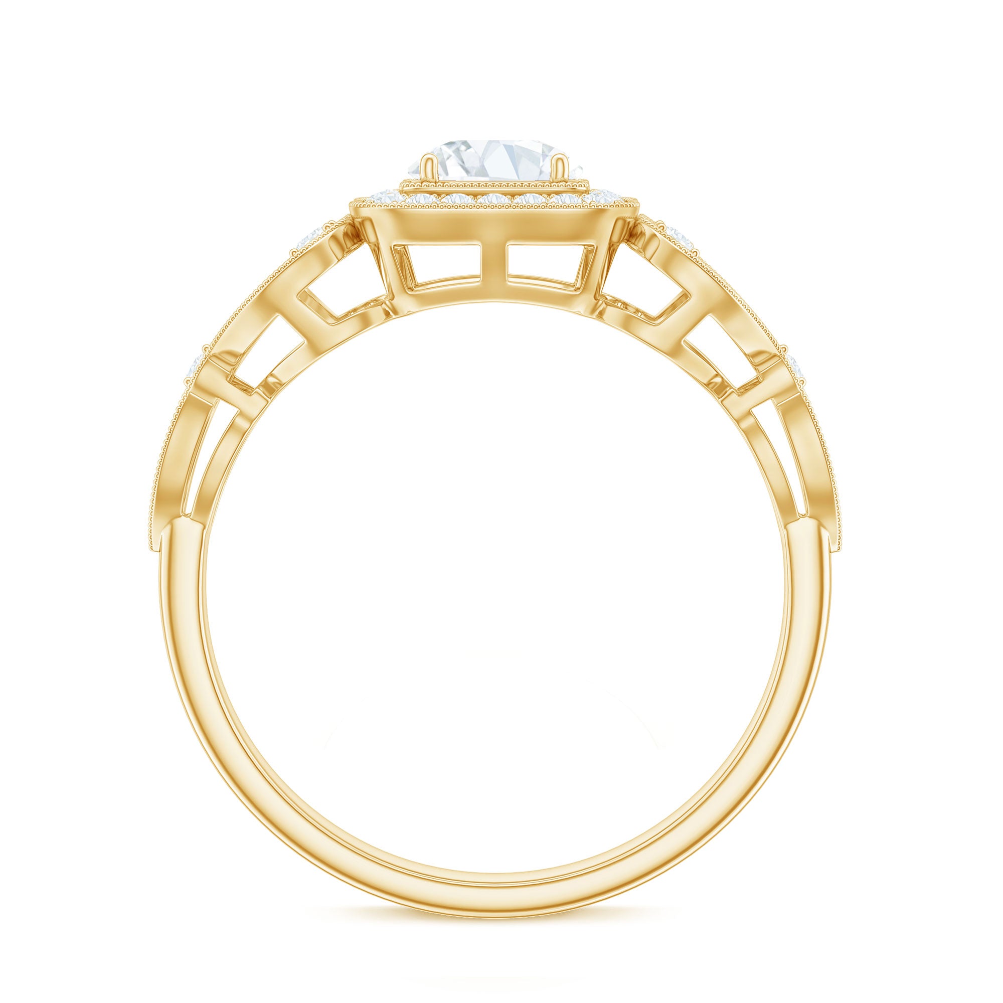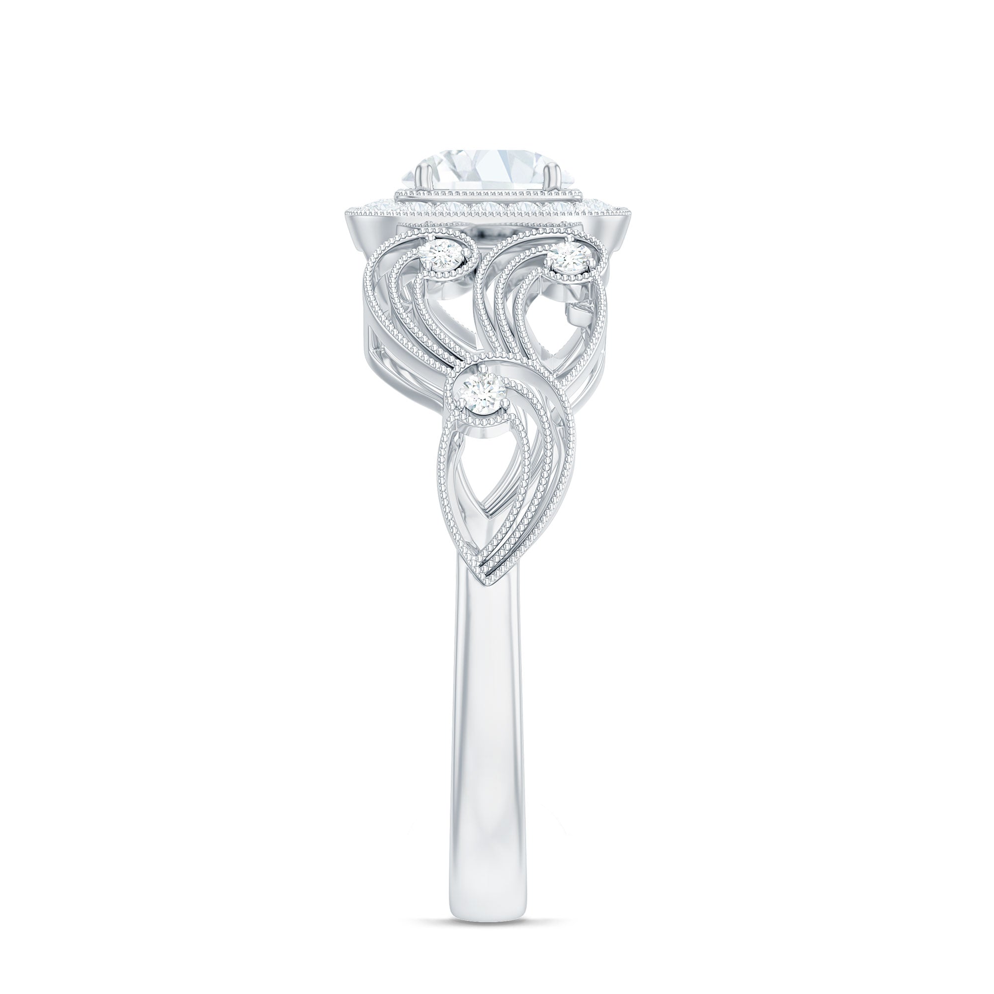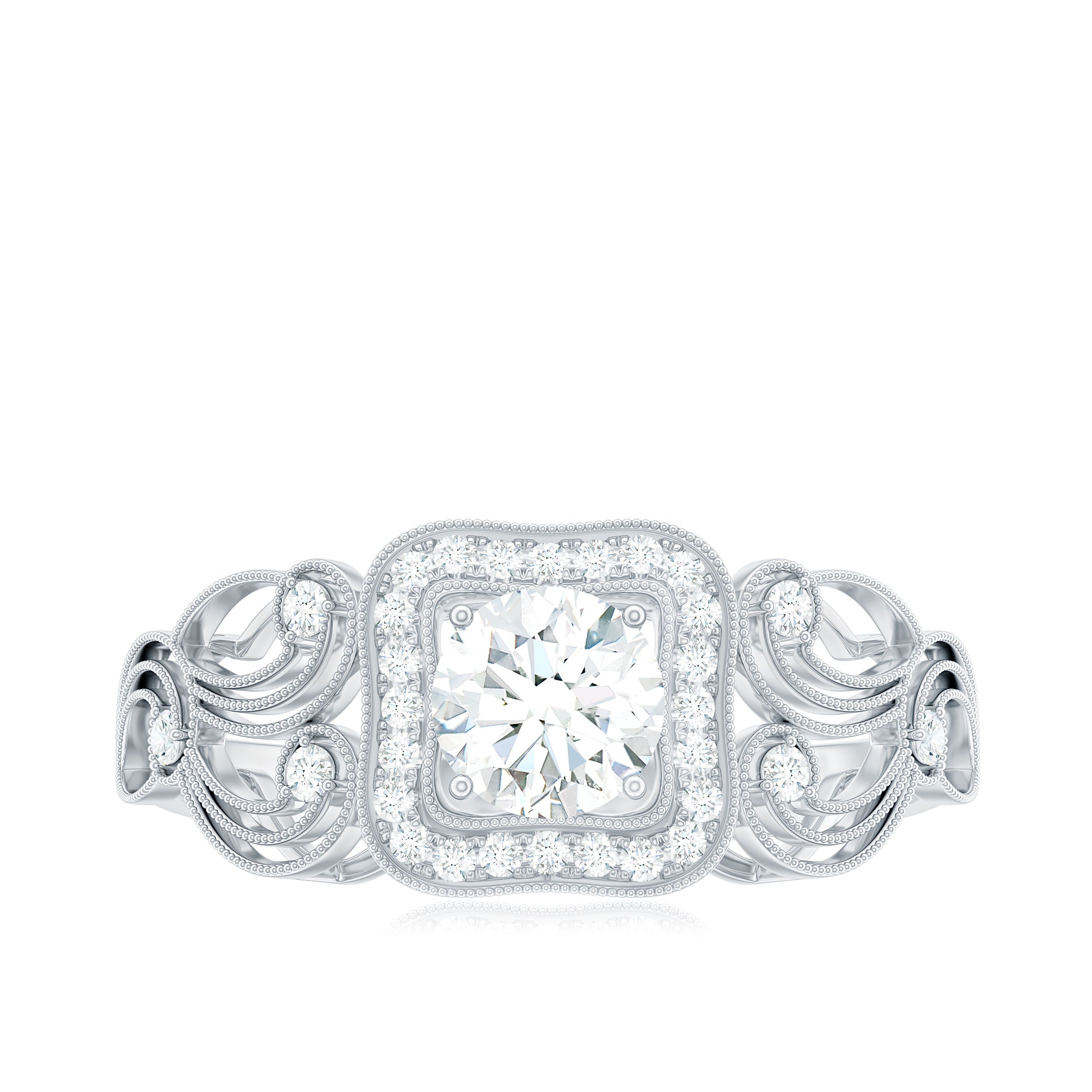 The Round Cut Zircon in Prong Setting with Beaded Details on Vintage Inspired Jewelry makes a statement piece for you. So, treat yourself with this CZ Ring.