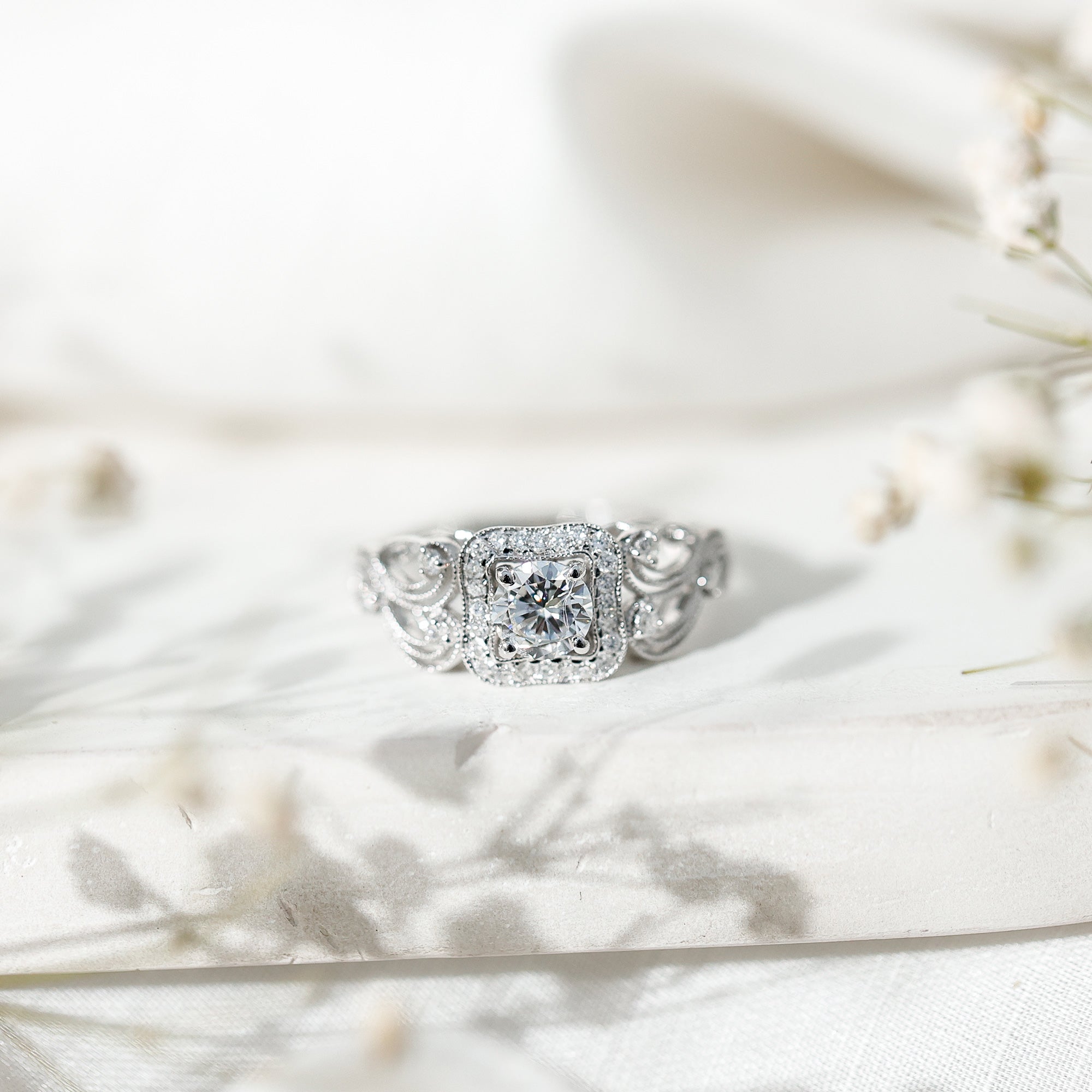 Zircon Vintage Inspired Halo Engagement Ring
